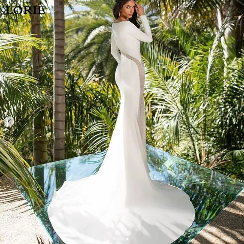 LORIE мягкие атласные свадебные платья русалки с длинным рукавом блестящие платья невесты 2021 Искусственные Свадебные платья на заказ