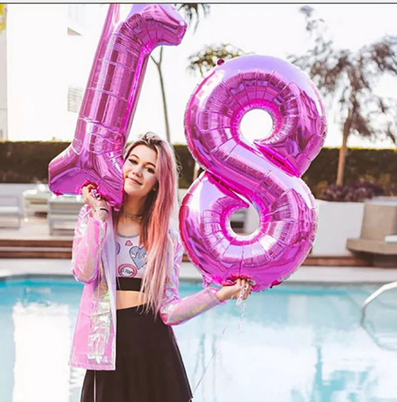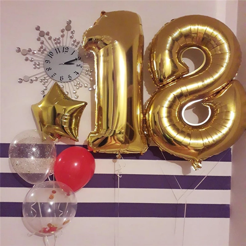 Воздушные шары из фольги, цифры 3240 дюймов, 18, золотистые, серебристые, розовые, цифры, для мальчика, девочки, 18 лет, день рождения, юбилей, вечеринка, украшение
