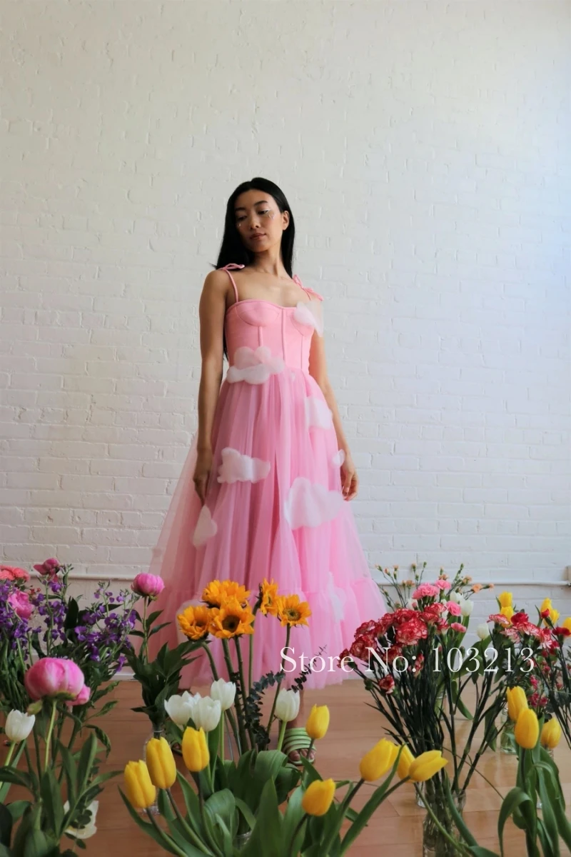 Розовое Тюлевое платье на заказ с облаком, ТРАПЕЦИЕВИДНОЕ платье для выпускного вечера, вечерние платья с регулируемыми лямками и ремешками по щиколотку для встречи выпускного вечера, 2021