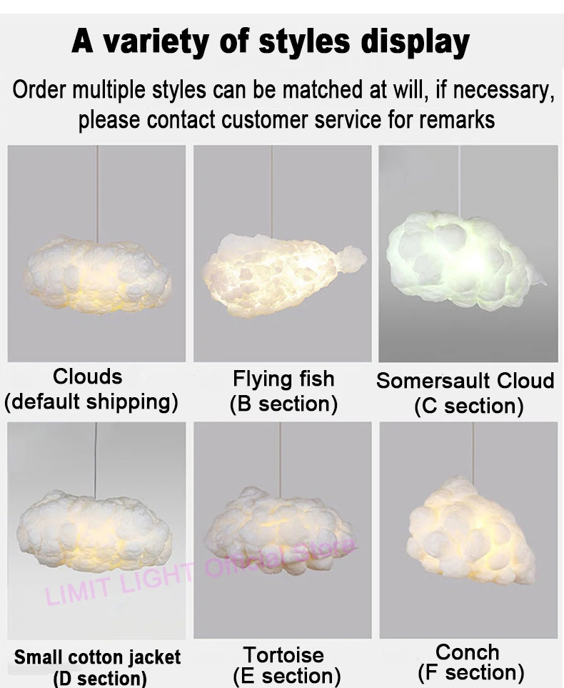 Современная креативная облачная люстра1. Материал: абсорбирующий хлопок + алюминий2. Источник: светодиодный светильник3. Размер: L30 см x H15 смL40 см x h18 смL50 см x h22 смL60 см x h28 см70 см x 35 смL80 см x H35 смL90 см x h38 смL100 см x h40 см4. Характеристики: облачный стиль, стиль летающей рыбы, стиль «сальто на облаке», маленький стеганый жакет, стиль черепахи, стиль раковины5. Площадь: 5-30 кв. М6. Цвет: белый, цвет7. Напряжение: 90-260 В8. Область применения: рестораны, торговые центры, Свадебные магазины, залы, гостиные, спальни, учебные комнаты и т. Д.9. Теплое напоминание: облачная версия выдается по умолчанию, и другие модели должны разместить заказ или связаться с сотрудниками Службы поддержки клиентов для получения комментариев. Подвесной провод по умолчанию 2 метра, который может быть отрегулирован, а также поддерживает индивидуальное удлинение. Свяжитесь со службой поддержки клиентов