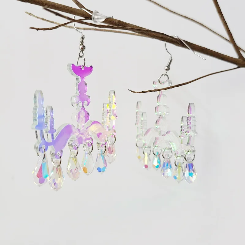 Геометрическая длинная секция Радужная акриловая лазерная люстра хрустальный светильник лампа акриловые серьги для женщинМатериал: акрилРазмер: 5*5 см