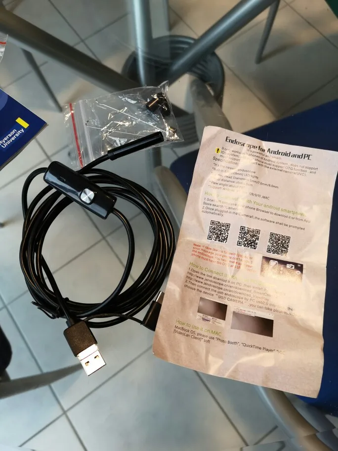 Мне очень нравится размер камеры. Может работать с мобильным телефоном (я бы хотел порекомендовать приложение для просмотра OTG). Есть некоторые инструменты с этим магнитом и крючком, кажется, полезно. Зеркало на 90 ° не пригодно для использования-слишком пушистое. Качество изображения так себе (картофель нравится), но учитывая размер (такой же толстый, как кабель) его ок. Все наружное расстояние довольно размыто. Все еще