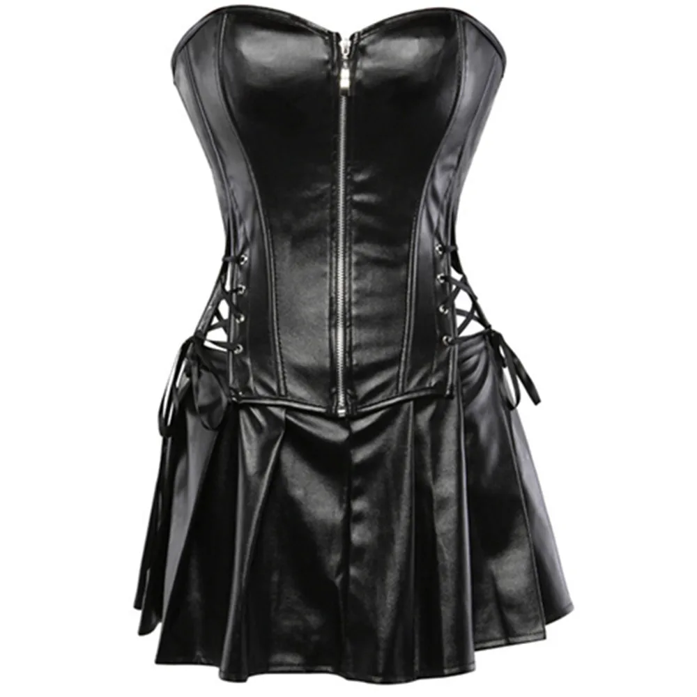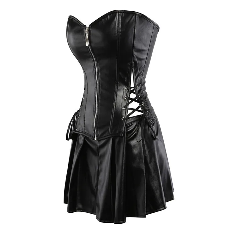 Сексуальные кожаные платья Корсеты юбка в стиле Бурлеск молния спер...