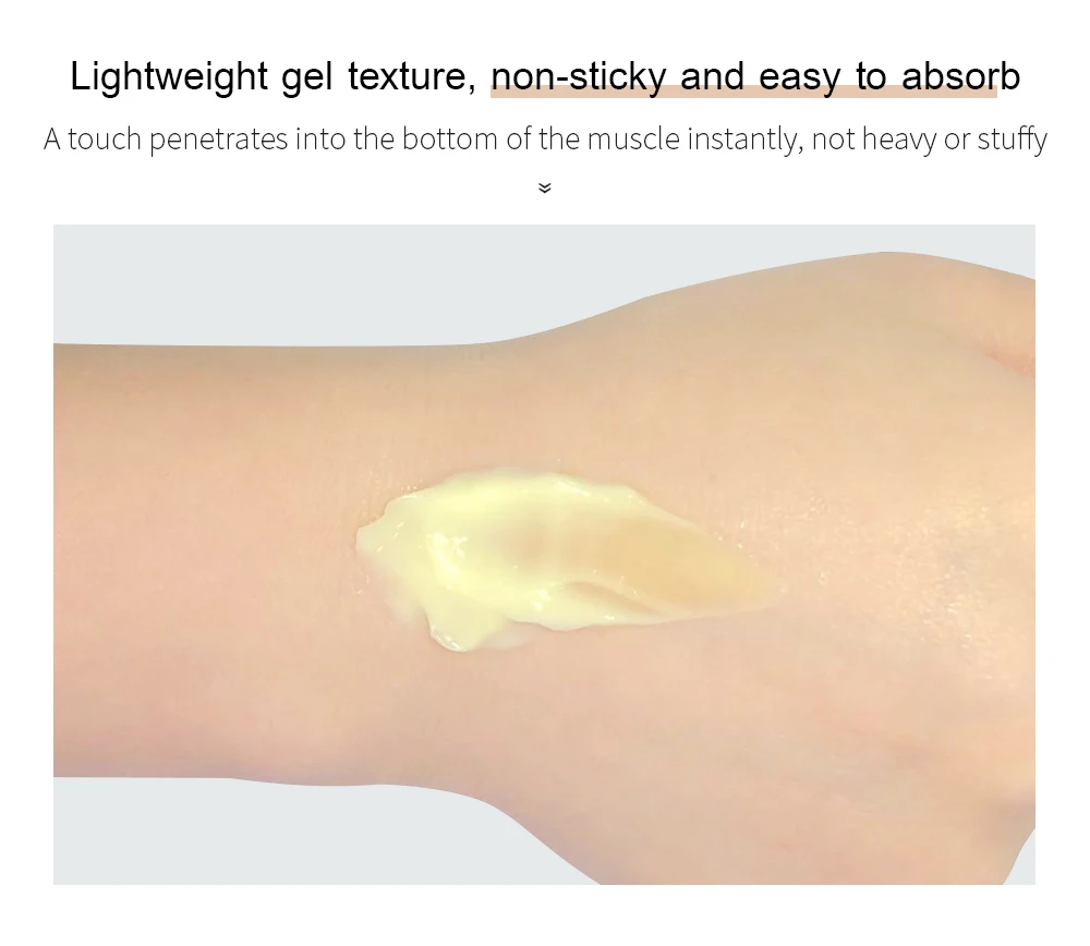 3. Легкая гелевая текстура, не липкая и легко впитывается. Прикосновение мгновенно проникает в нижнюю часть мышцы, не сильно или душно