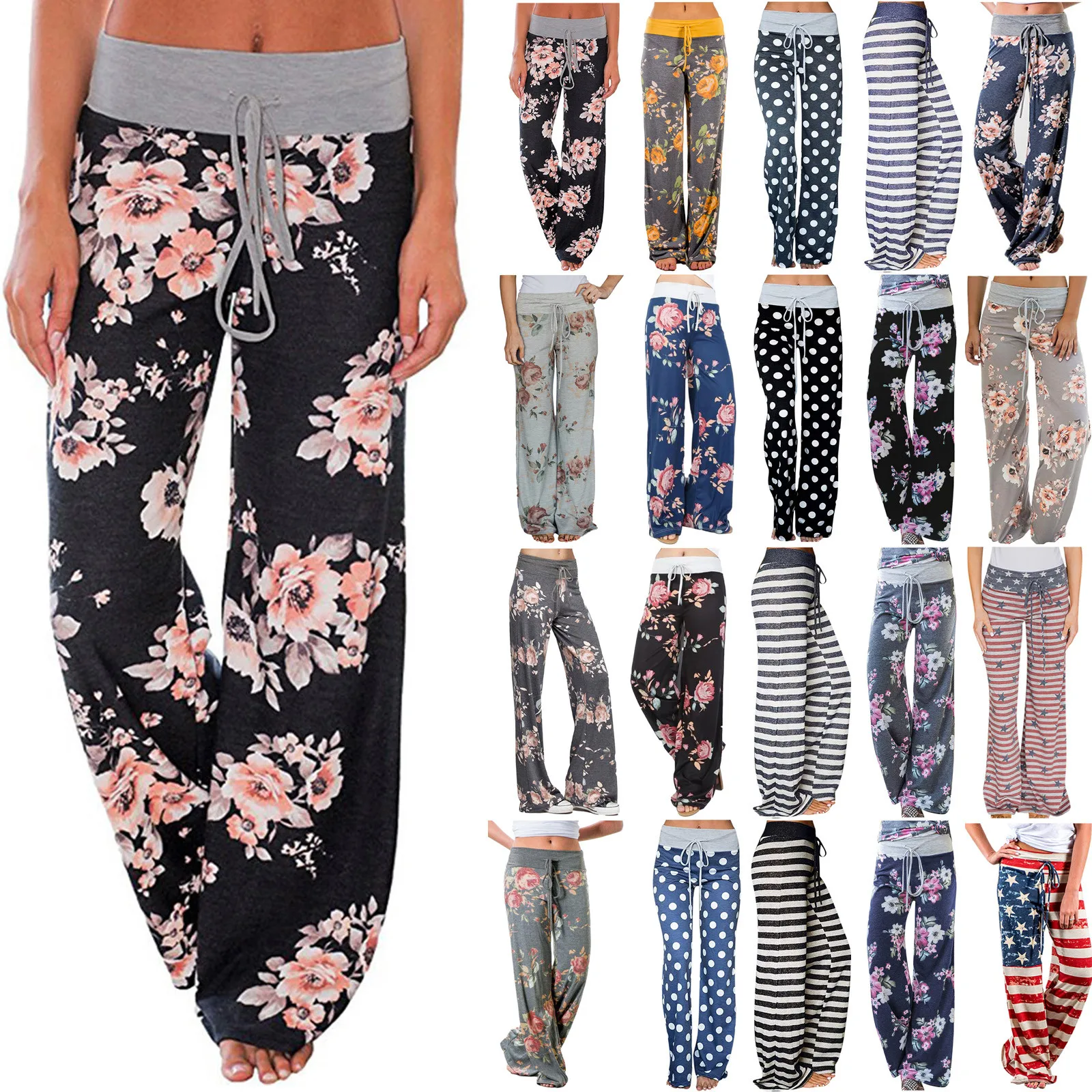 Женские брюки, Удобная Повседневная Пижама, широкие штаны с цветочным принтом на завязках, штаны для бега, женские брюки оверсайз