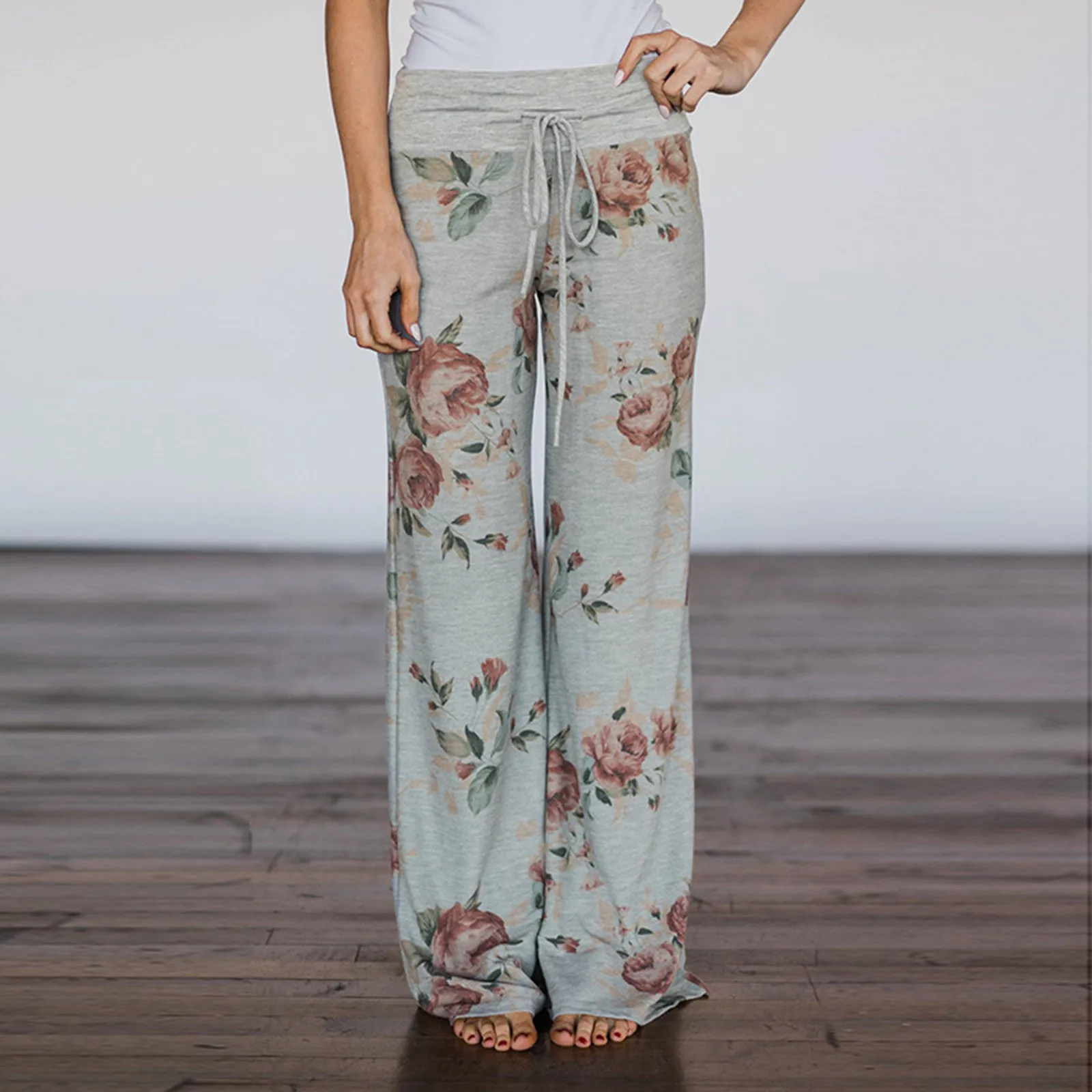 Женская Удобная Повседневная Пижама с цветочным принтом; Свободные брюки на завязках для отдыха