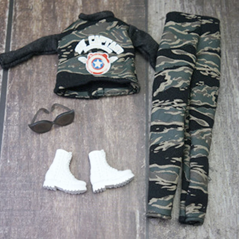Камуфляжные армейские наряды для куклы Барби, комплект одежды для Барби, укороченный топ, рубашка, обувь под брюки, очки, 1/6 куклы, аксессуары, игрушки