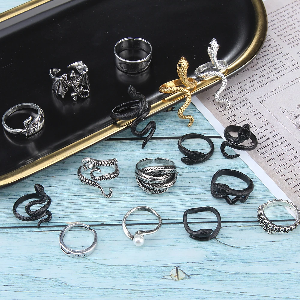 Мужское и женское кольцо в стиле ретро, регулируемое кольцо в античном стиле со змеей и драконом, 2021