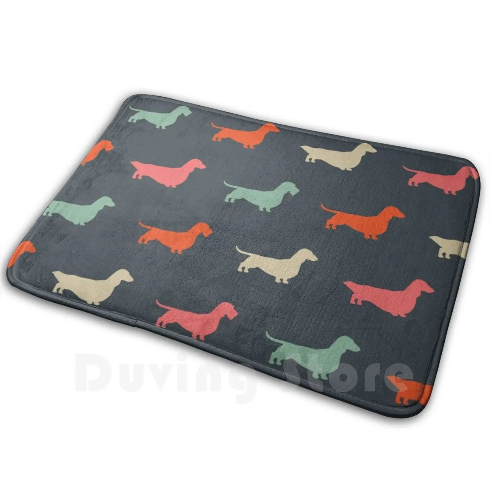 Узор с силуэтами таксы Разноцветный длинный, с волнистым и гладким покрытием Wiener ковер для собак, коврик, подушка