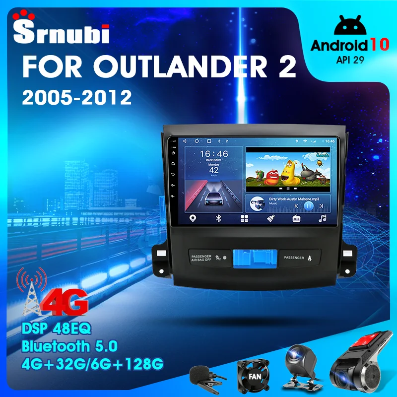 Srnubi Android 10 автомобильное радио для Mitsubishi Outlander 2 2005-2012 мультимедийный видеоплеер 2 Din GPS навигация Carplay головное устройство