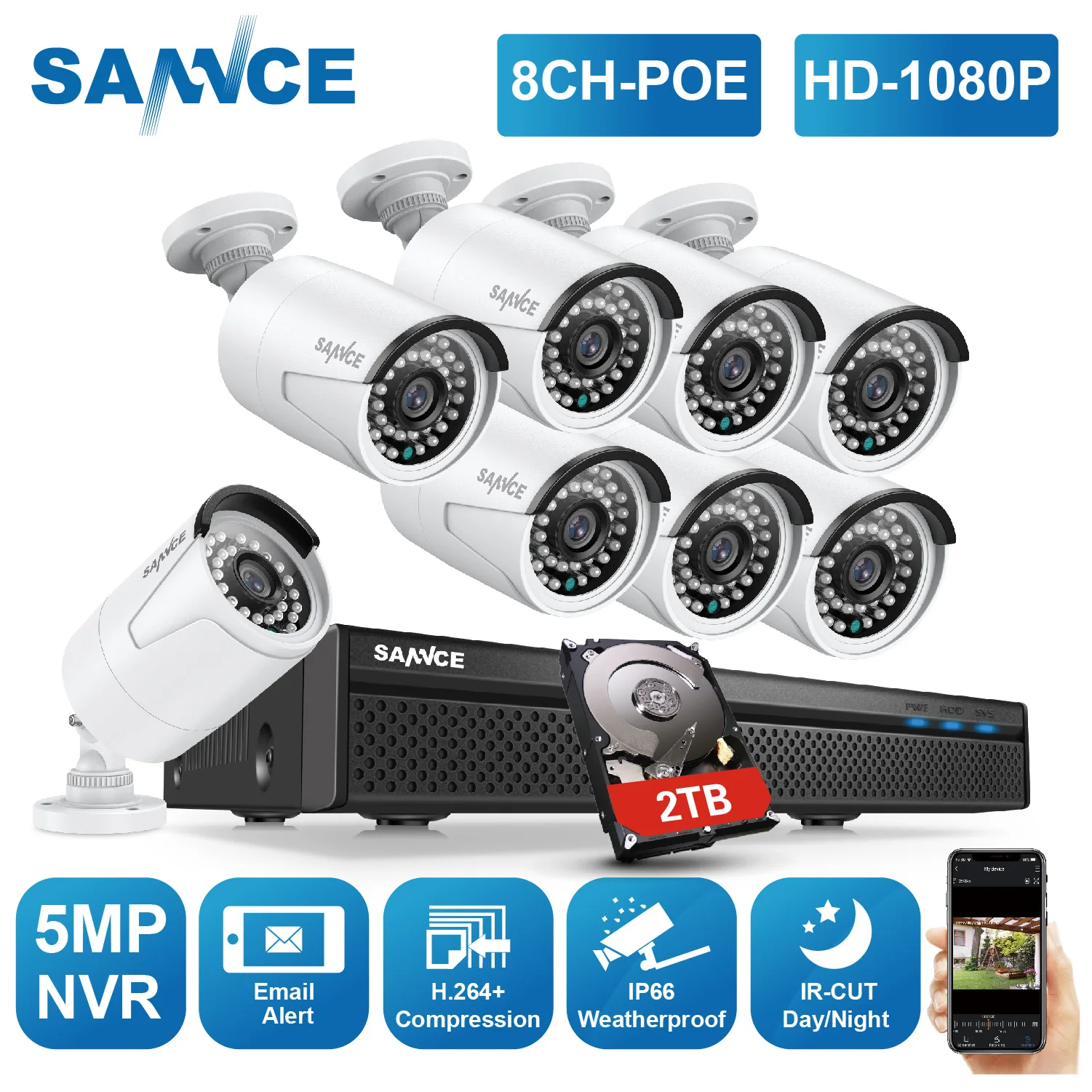 SANNCE 8CH POE 5MP NVR комплект CCTV система безопасности 468 шт 2MP ИК наружная водонепроницаемая IP камера микрофон аудио в комплект видеонаблюдения