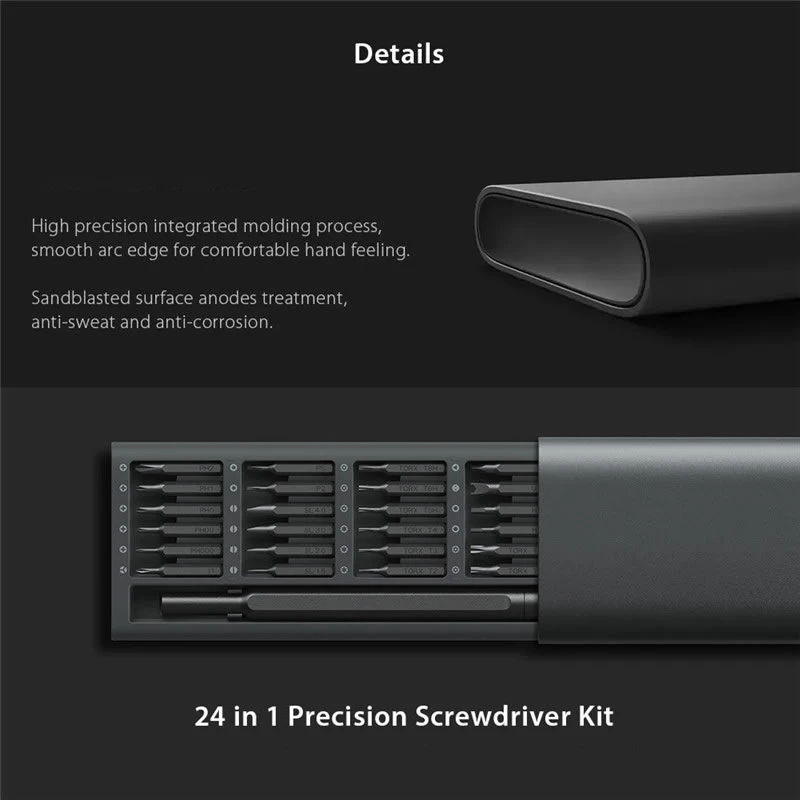 1 отвертка 24 винта: - PH000 / PH00 / PH0 / PH1 / PH2 - SL1.5 / SL2.0 / SL3.0 / SL4.0 - P2 / P5 - T2 / T3 / T4 - TR5 / TR6 / TR8 / TR10 / TR15 - H1.5 / H2.0 - U2.6 - Y3 - TRI2.3 1 x коллекционный чехол