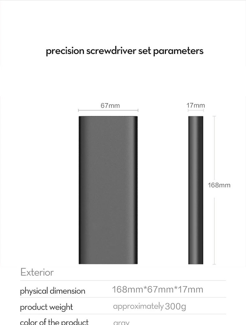 10 аксессуаров для разборки 1 x пластиковая ручка 1 x гибкий удлинитель 1 x удлинитель 1 x пинцет 3x пластиковые инструменты для намагничивания 1 x намагничиватель/размагничиватель 2 x открывающийся выбор 42 отвертки биты: Phillips:PH0000 PH000 PH00 PH0 PH1 Щелевые: SL1.5 SL2.0 SL2.5 SL3.0 SL4.0 Trox: T2 T3 T4 T5 T6 T8 T10 T15 Pentagonal: P2 【☆ 0,8 】 P5 【☆ 1,2 】 P6 【☆ 1,5 】 с шестигранной головкой: H0.9 H1.3 H1.5 H2.0 H2.5 H3.0 H3.5 H4.0 три точки: Y0.6 Y2.0 Y2.5 Треугольники: △ 2,0 △ 2,3 формы «U»: u2.6 SIM: 0,8 4 мм гнездо: M2.5 M3.0 M3.5 M4.0 M4.5 M5.0 M5.5 ИС: PH2