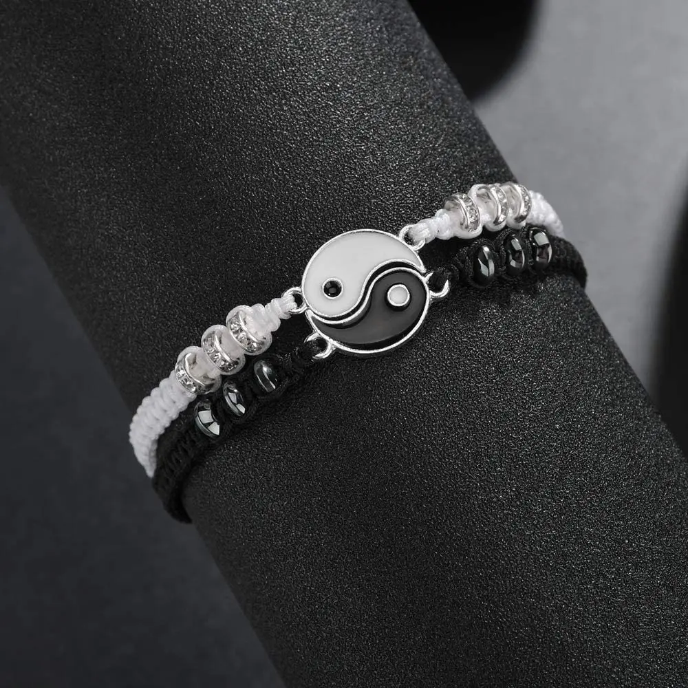 Парные браслеты ручной работы тайцзи Инь Янь, регулируемая цепочка ...