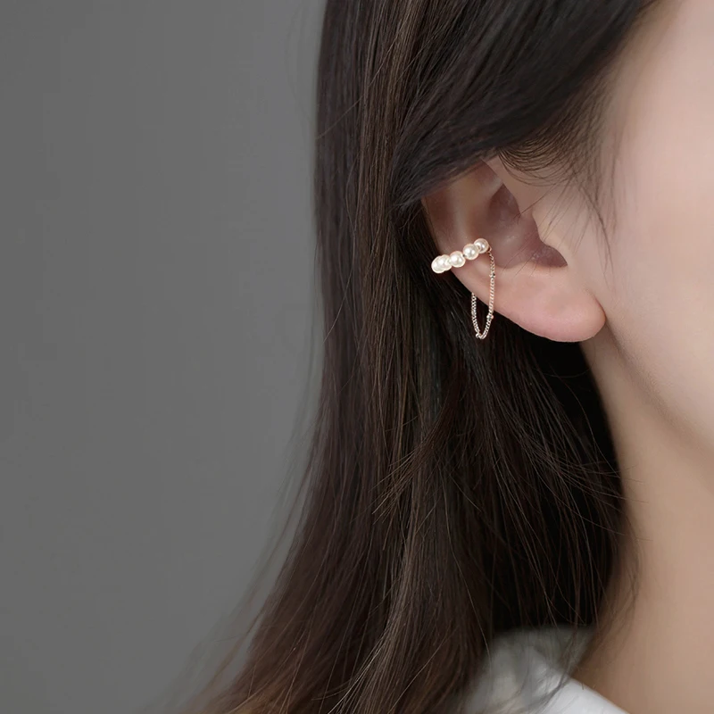 Женские серьги-клипсы ANENJERY, 925 пробы, серебристые, без пирсинга, с жемчугом и кисточками