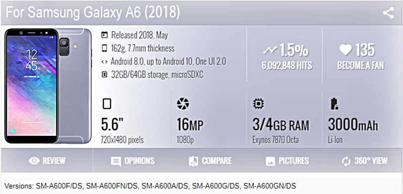 Номер моделиFor Samsung Galaxy A6 2018 A600 A600F A600FN J800