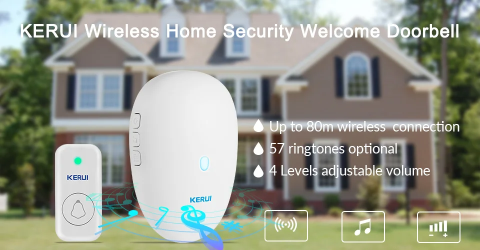 Дверной звонок KERUI M521, Беспроводной Бытовой дверной звонок с 57 песнями и 4 уровнями громкости, со встроенным аккумулятором