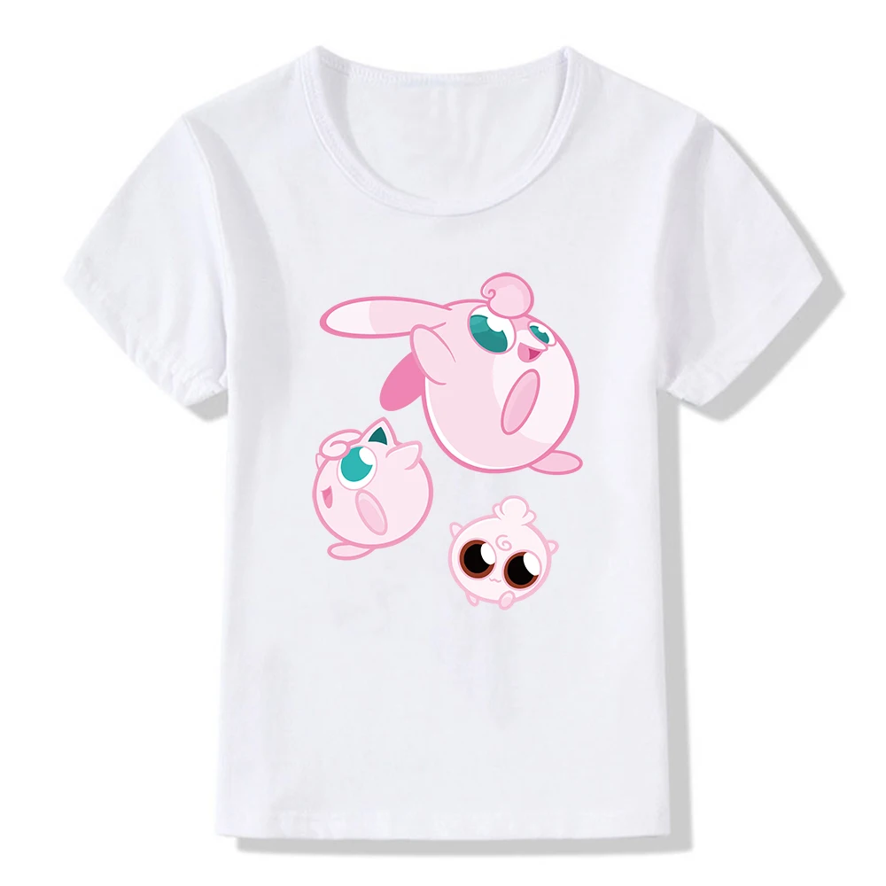 С покемонами для девочек модал футболки с персонажами из аниме фигурки Jigglypuff с изображением Пикачу командная футболка, рубашка для маленького мальчика, летняя детская повседневная Костюмы Одежда Топы И Футболки для малышей