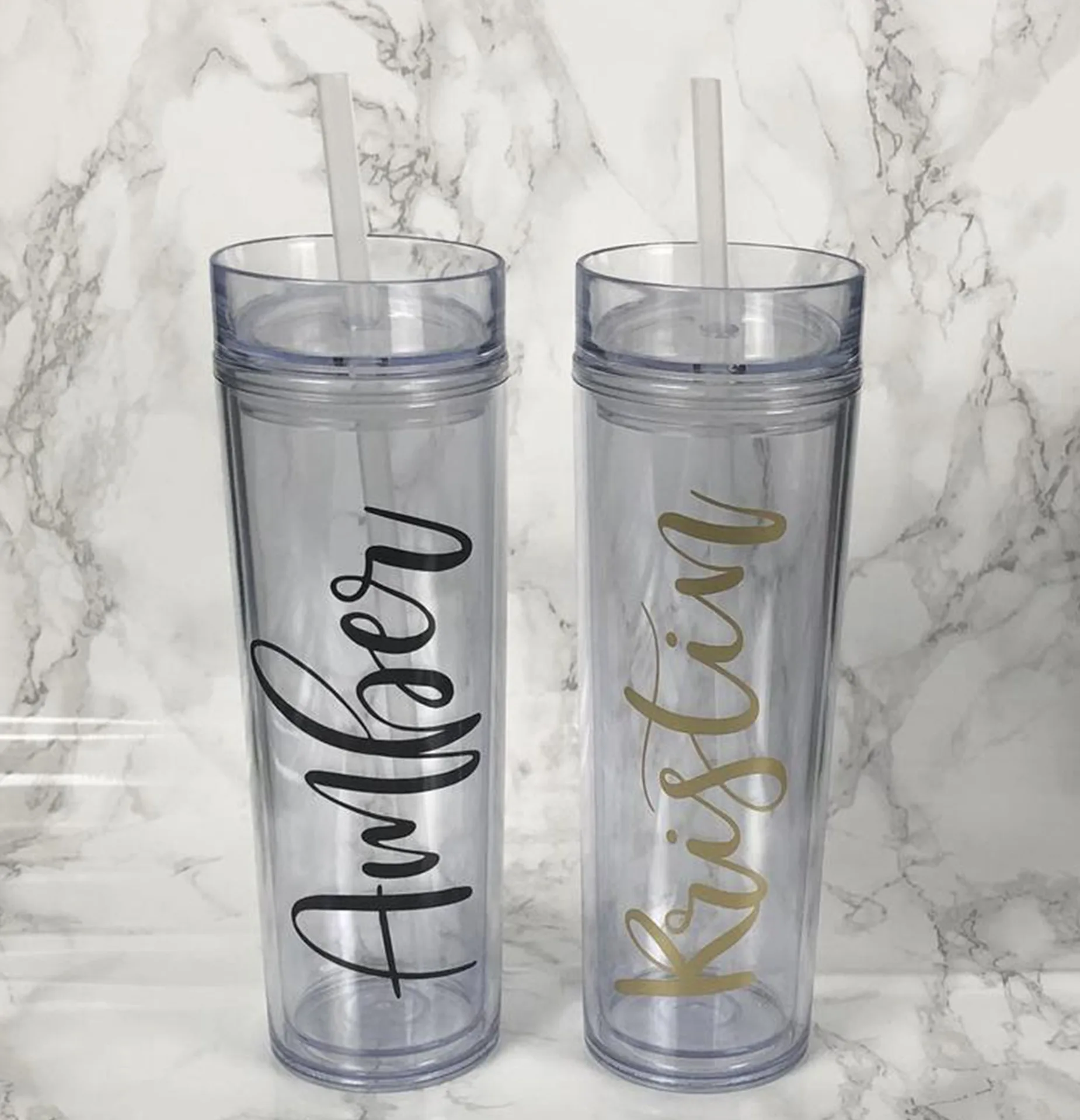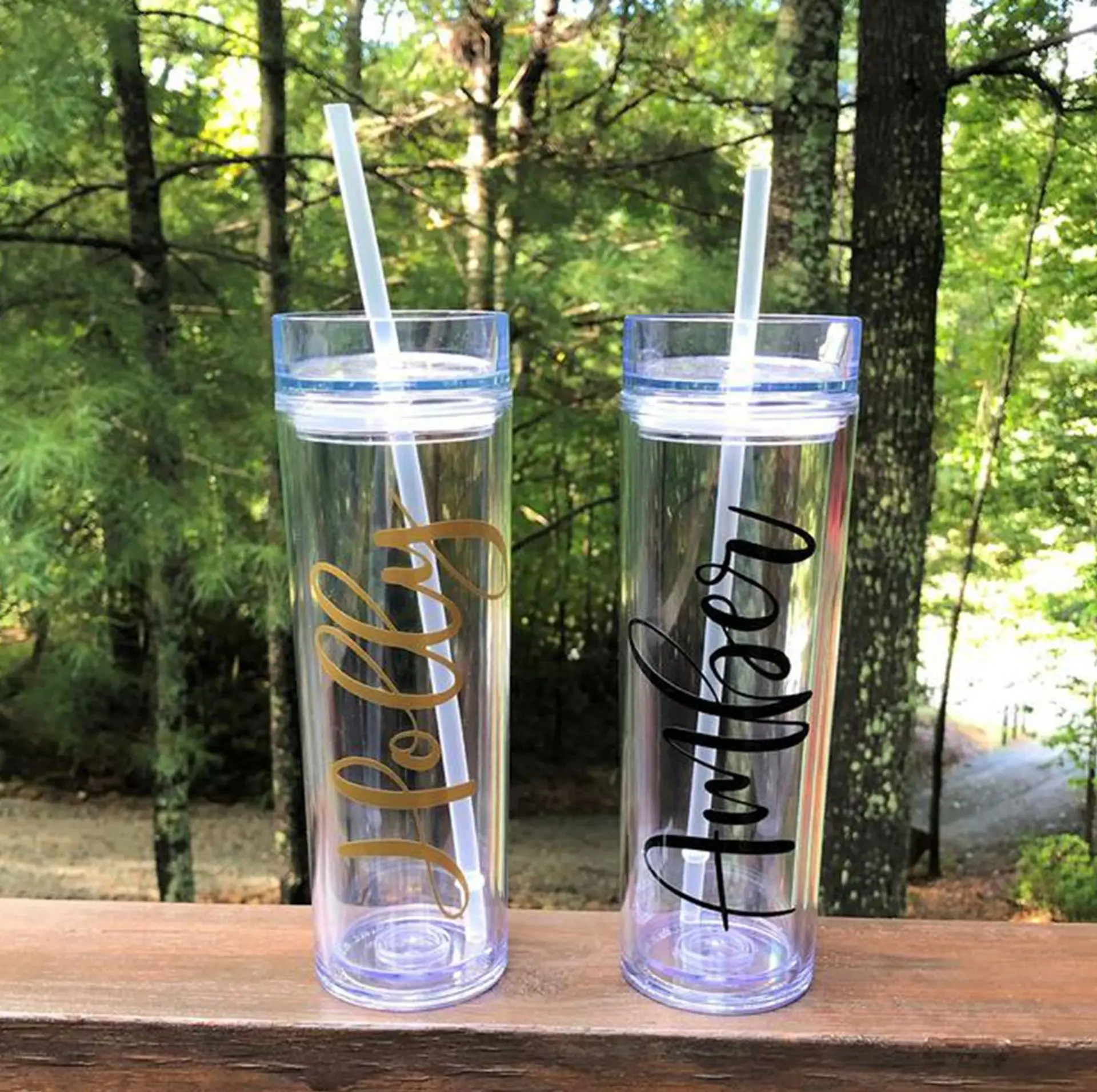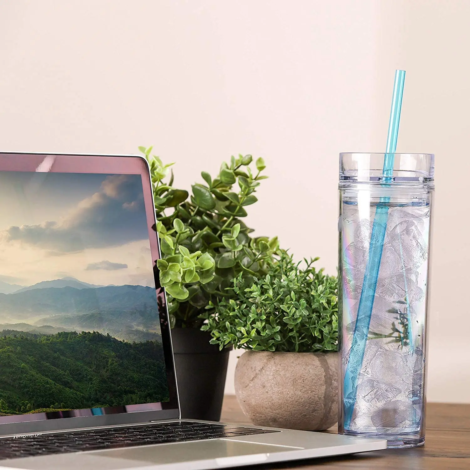 16oz прямые чашка для молока с соломинкой Для акриловые двухслойная бутылка для напитков с изоляцией вечерние Подарочный стеклянный бокал для вина