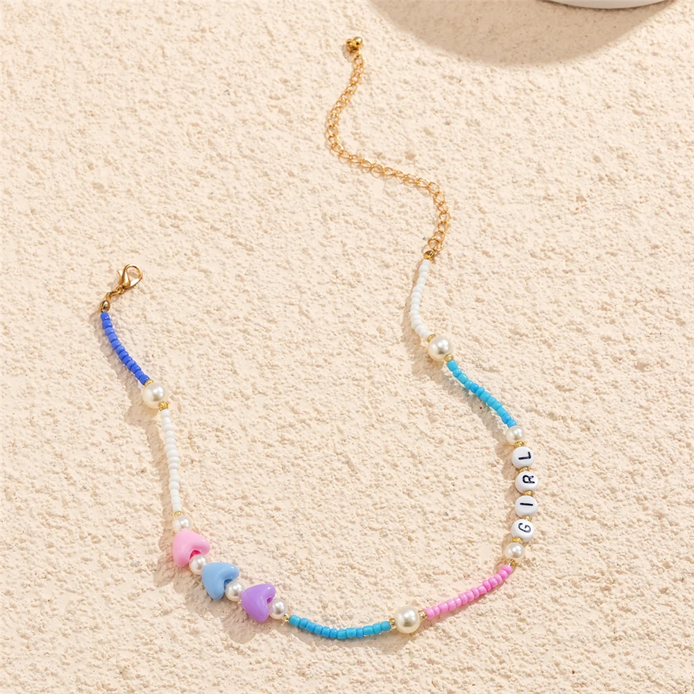 Многослойное ожерелье для женщин, многослойное ожерелье в стиле бохо, с бусинами геометрической формы, с алфавитом, со смайликом, 2021