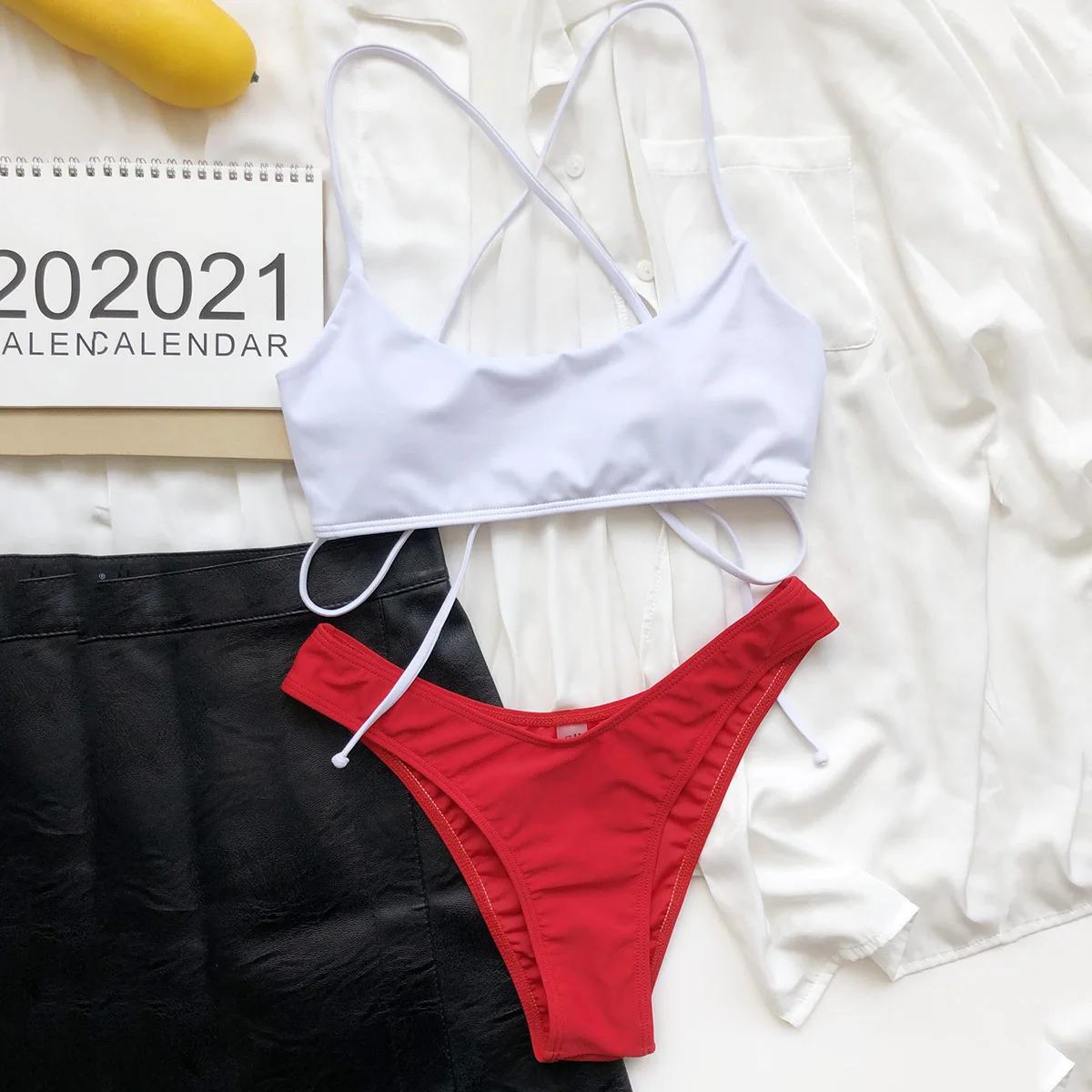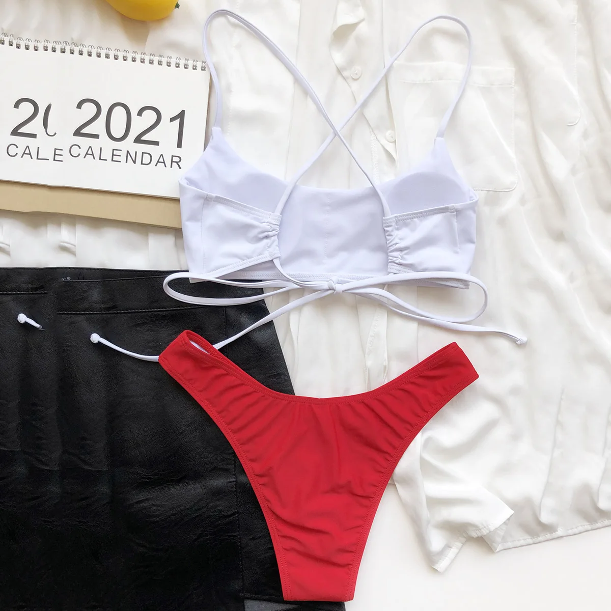 Соблазнительное бикини 2021, женский купальник, бандажный купальник, Женский однотонный комплект бикини, Бразильский купальный костюм, купальные костюмы, пляжные