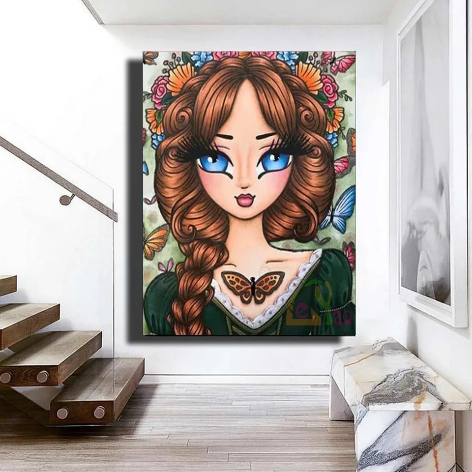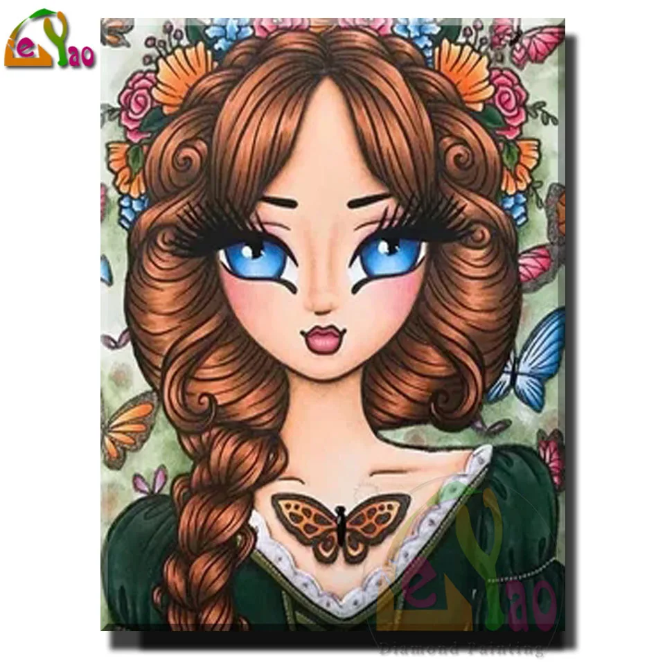 5d алмазная Картина Бабочка сказочная Алмазная вышивка большие глаза мультфильм девушка Мозаика Искусство Картина Стразы подарок домашний декор