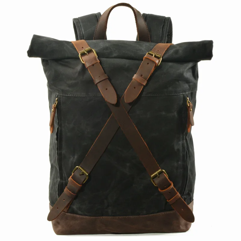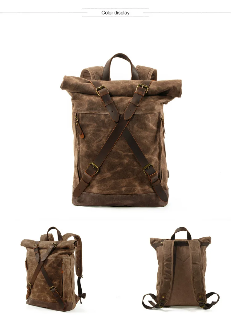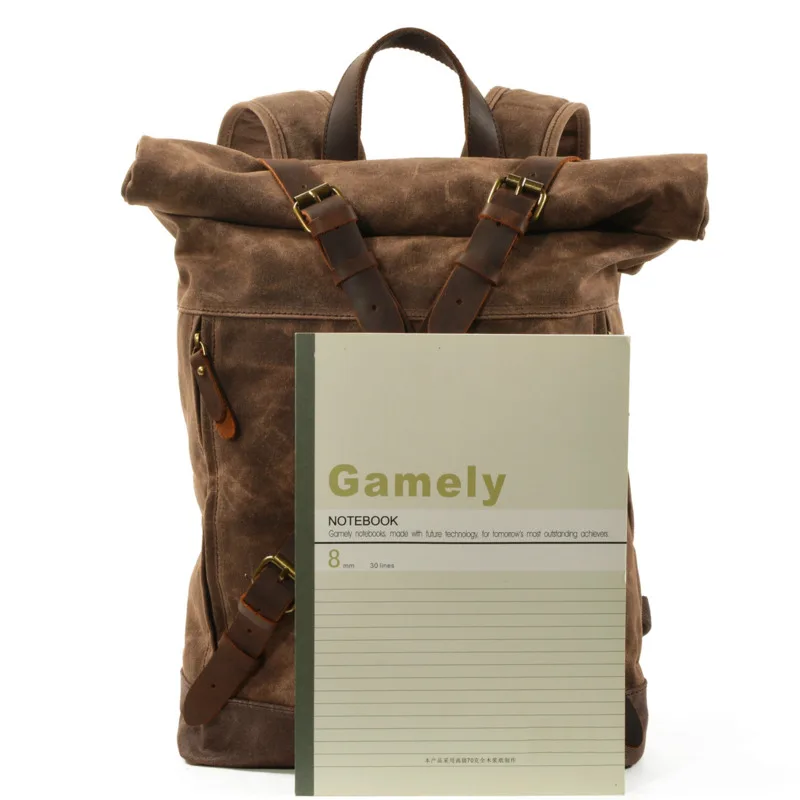 Винтажный Холщовый кожаный водонепроницаемый рюкзак Mochila Rolltop...