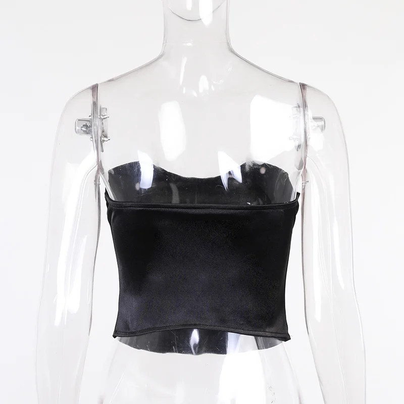 Женский Атласный топ-бюстье, укороченный Топ без бретелек, с открыт...