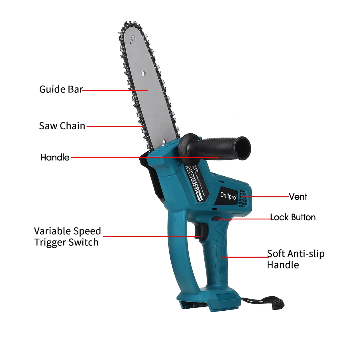 Электрическая пила Drillpro, беспроводной садовый инструмент для деревообработки, 8 дюймов, 18 в, с аккумулятором