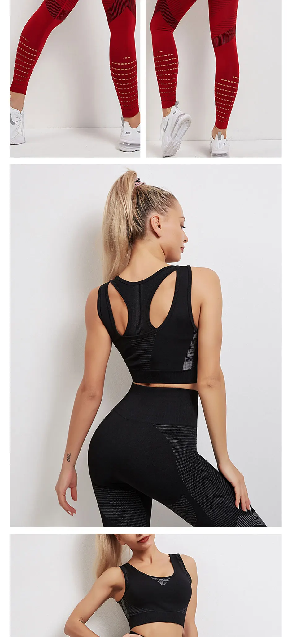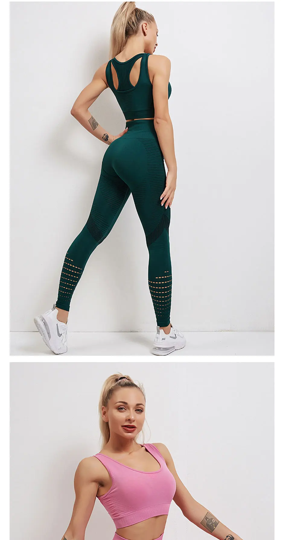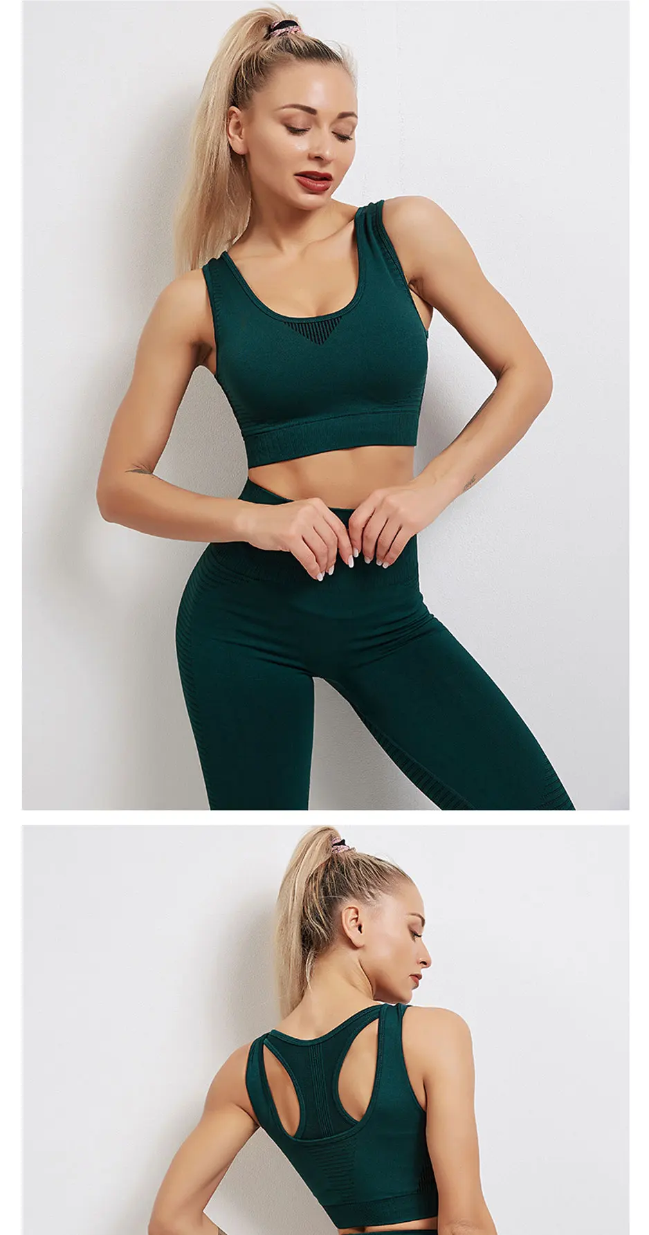 Спортивный костюм для йоги бесшовный Женский, тренировочная одежда, гимнастический костюм, леггинсы с высокой талией, спортивный бюстгальтер, кроп-топ, 2 шт.