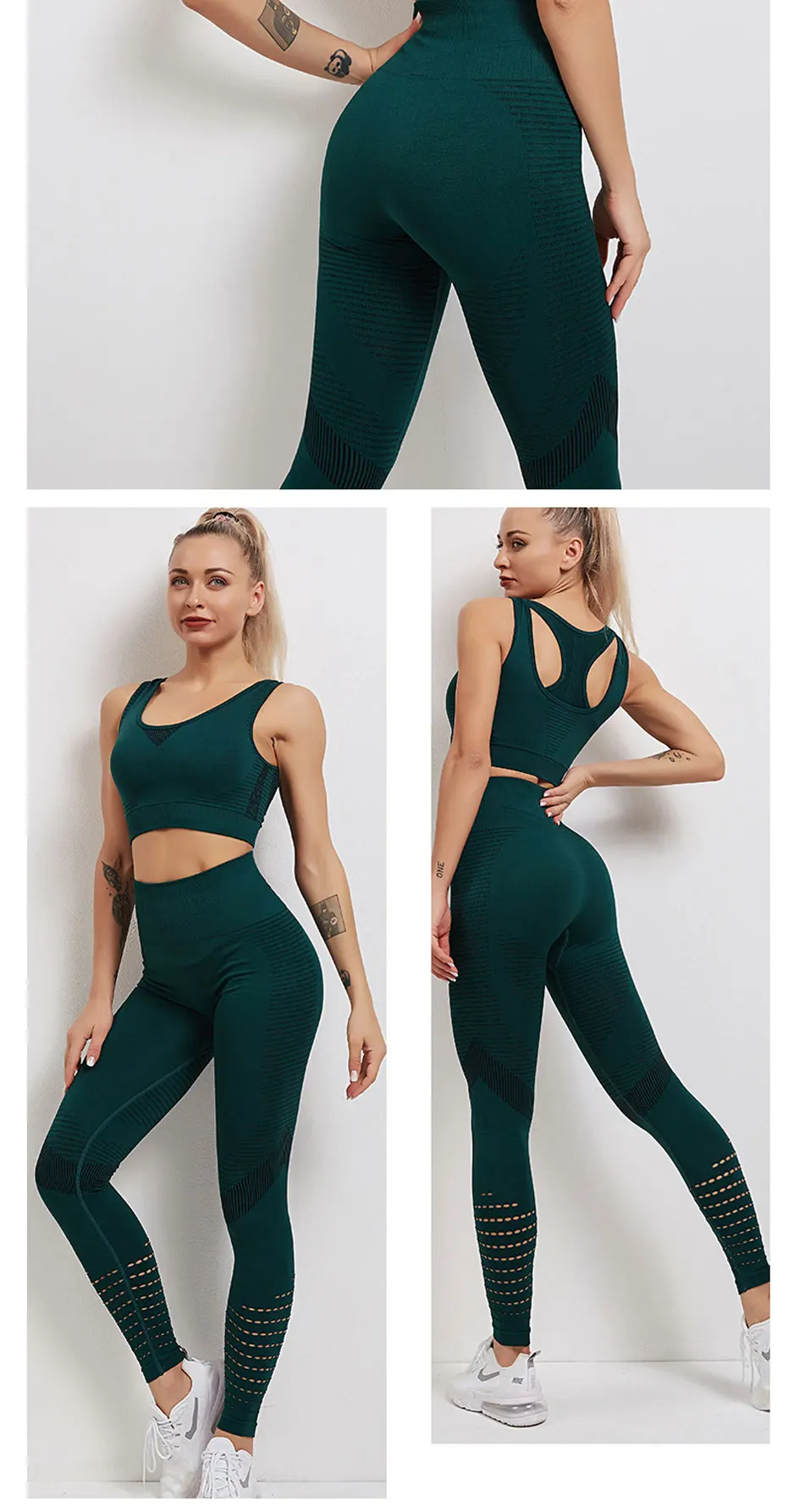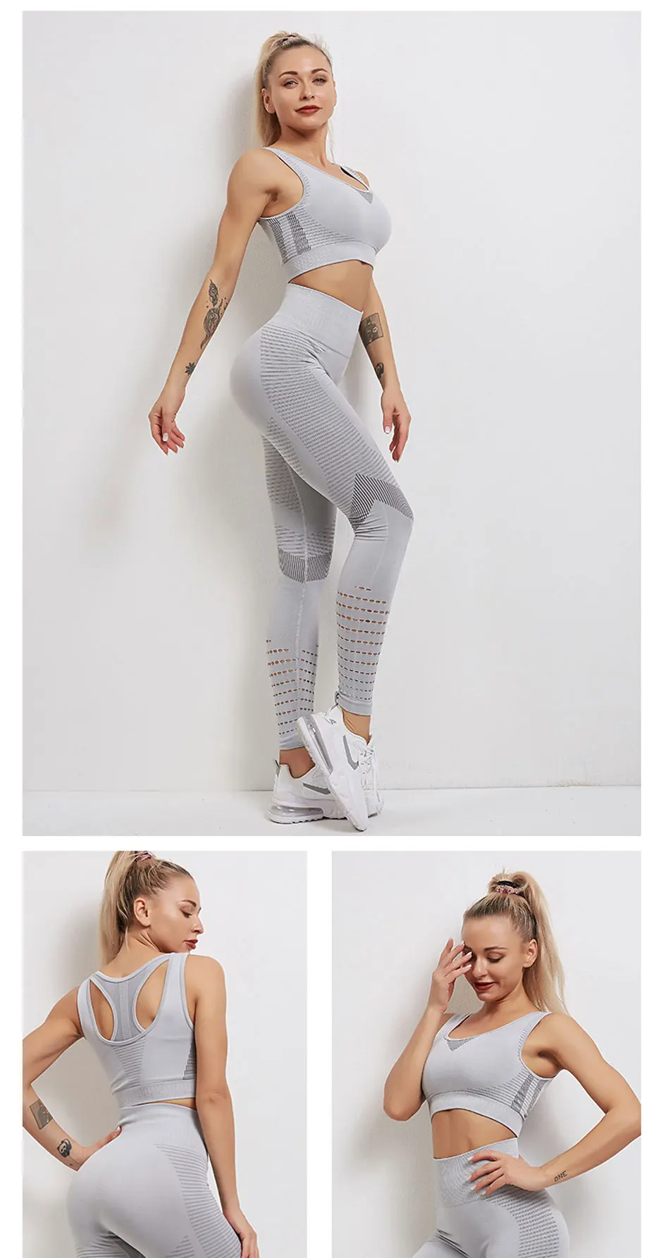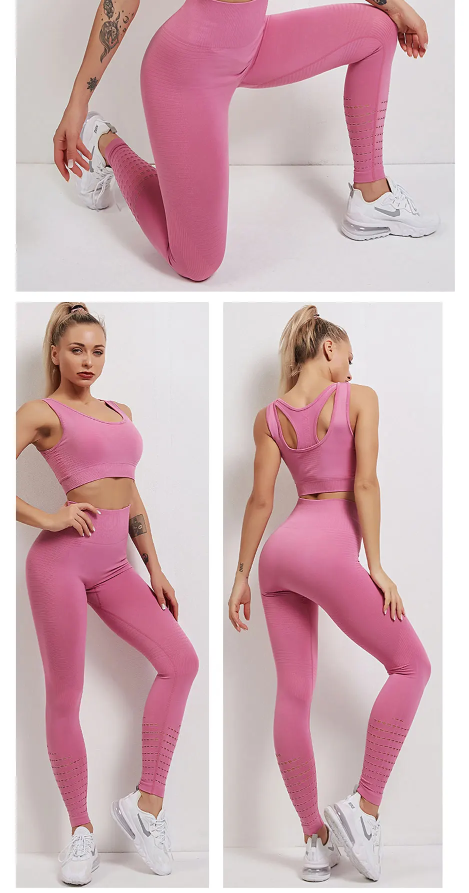 Спортивный костюм для йоги бесшовный Женский, тренировочная одежда, гимнастический костюм, леггинсы с высокой талией, спортивный бюстгальтер, кроп-топ, 2 шт.