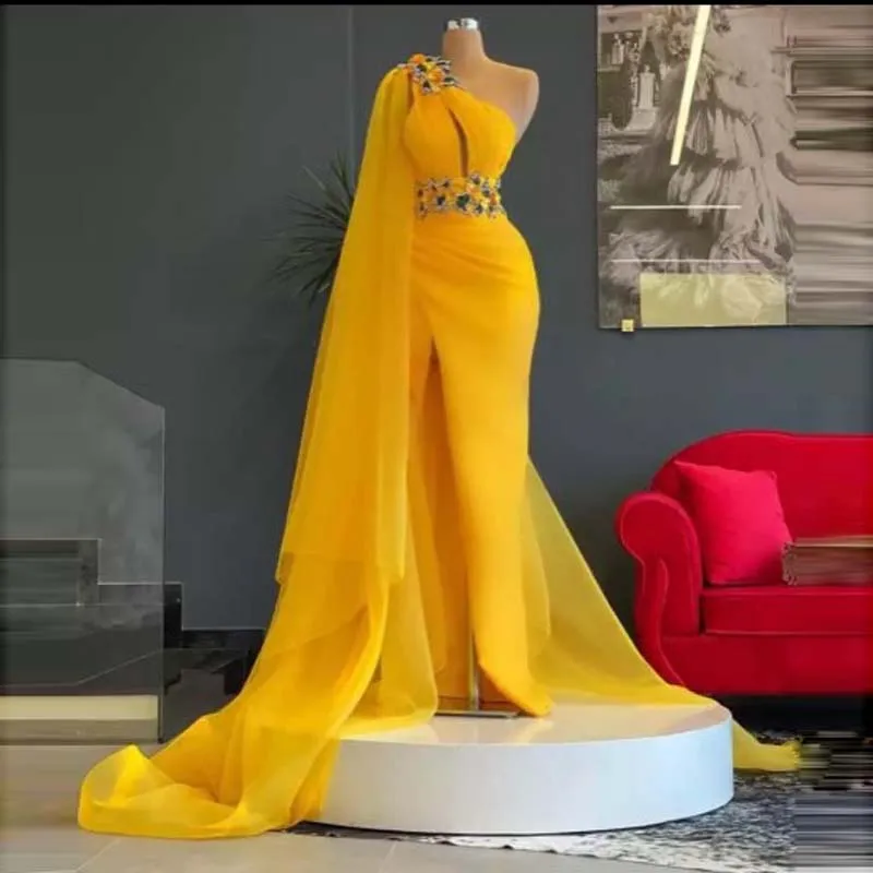 Женское вечернее платье-Русалка с открытым плечом и разрезом по бокам