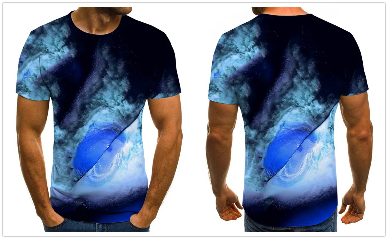 Футболка мужская с 3D-принтом звездного неба, модная рубашка с коро...