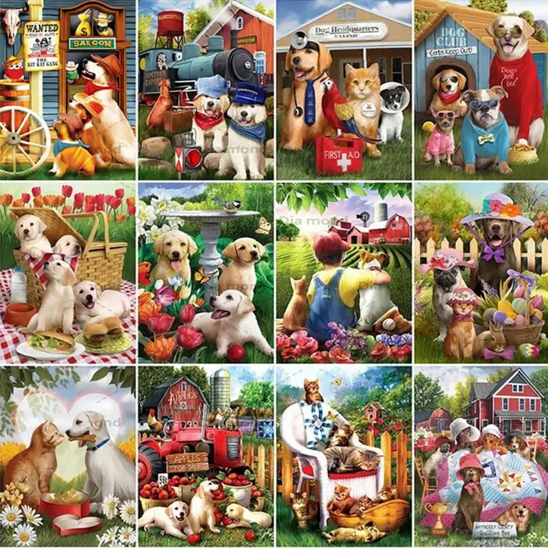 Алмазная живопись 5D сделай сам, картина с квадратнымикруглыми стразами, мультяшная собака, кот, вышивка крестиком, украшение для дома, подарок ручной работы