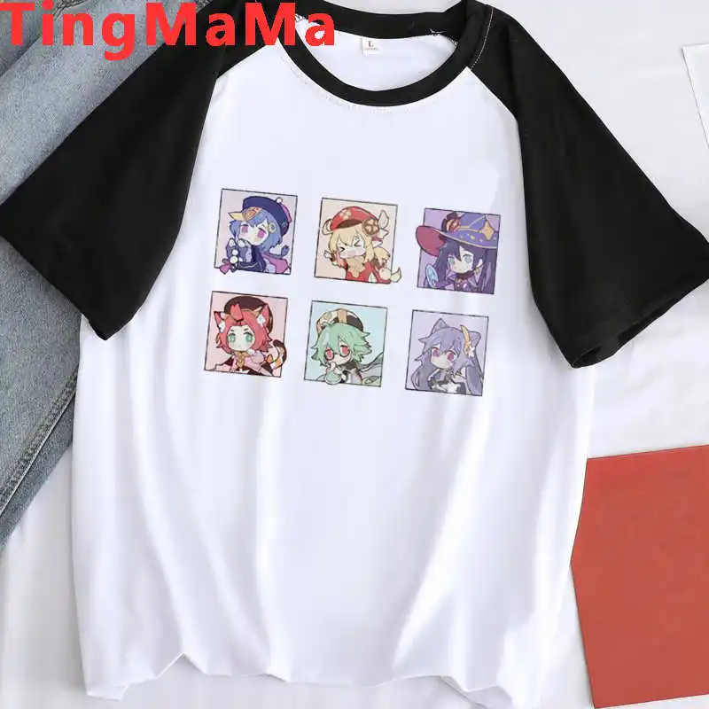 Genshin Impact Keqing, футболка, Мужская парная одежда, harajuku kawaii 2021, повседневные футболки с графическим рисунком, футболка, футболка ulzzang