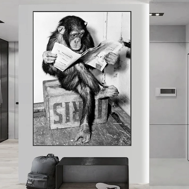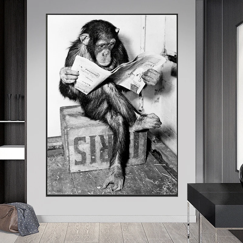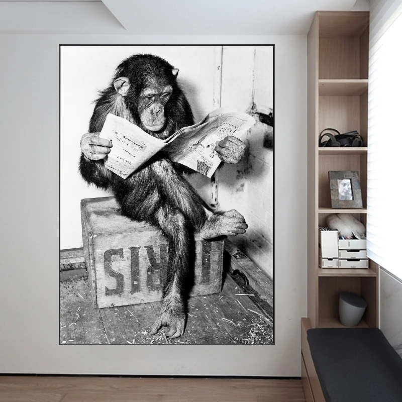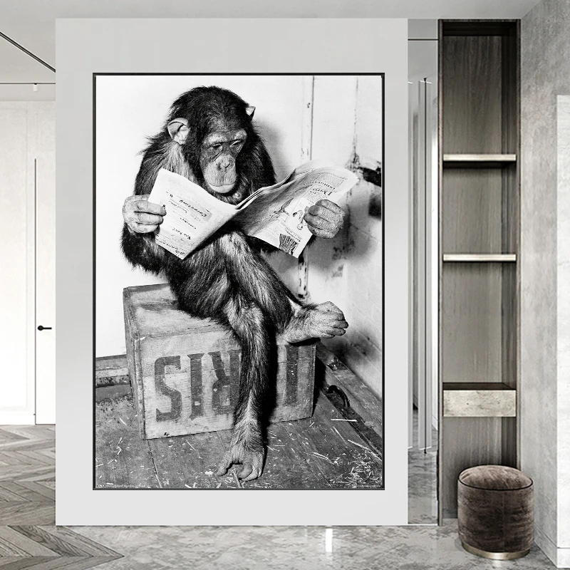 Картина на холсте с забавными животными обезьянами, шимпанзе, орангутан, газета для чтения, плакат и принты, Настенная картина, домашний интерьер, Декор