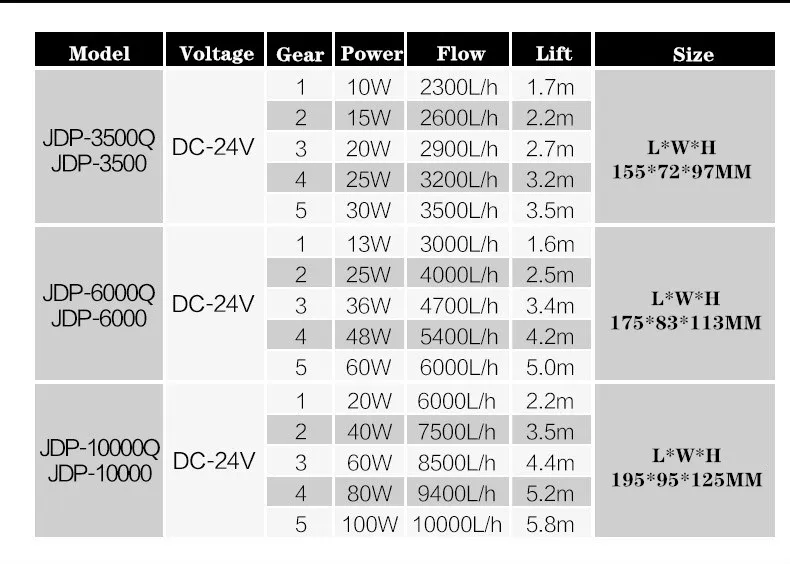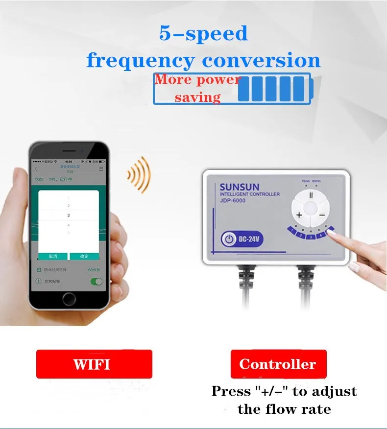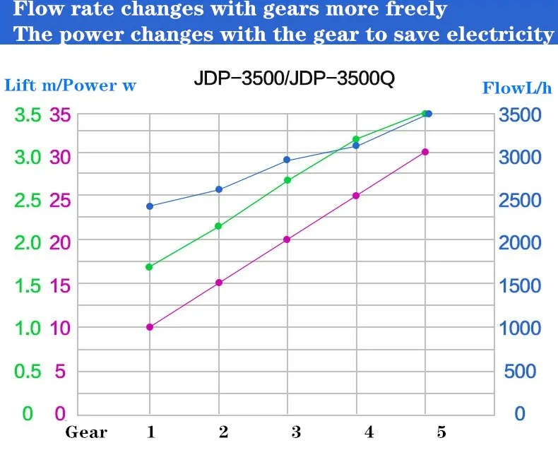 Подъем водяного насоса может управляться контроллером, 1-5 зубчатых передач, чем больше шестерня, тем выше Потребляемая мощность, 1-я Шестерня означает, что насос работает на номинальной мощности, есть схема в детальном изображении для справки