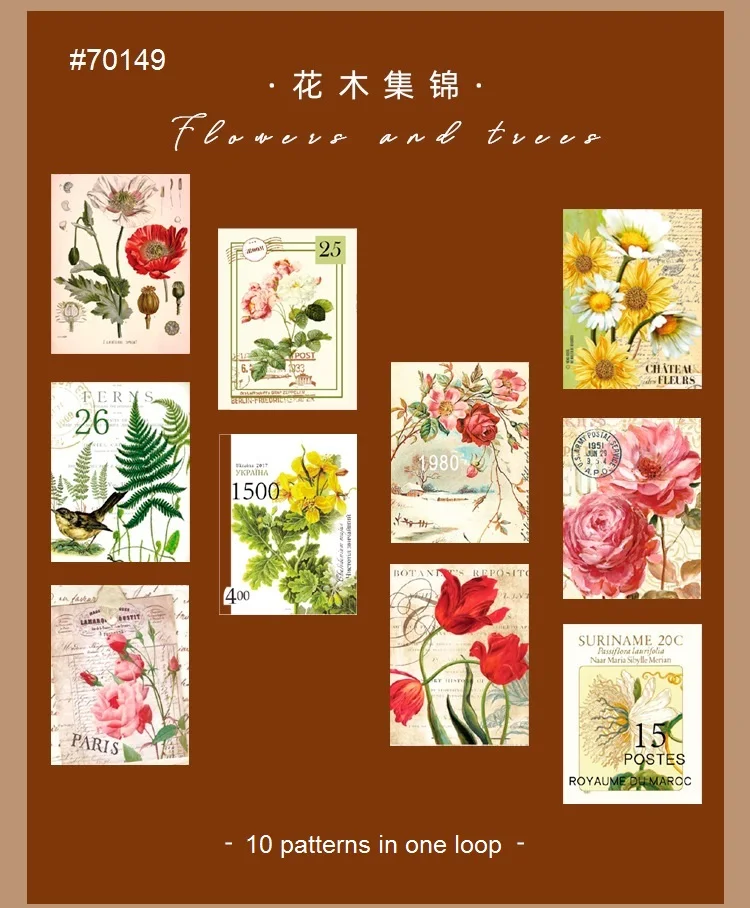 Винтаж почтовое отделение серии лента Washi ретро-марки растения де...