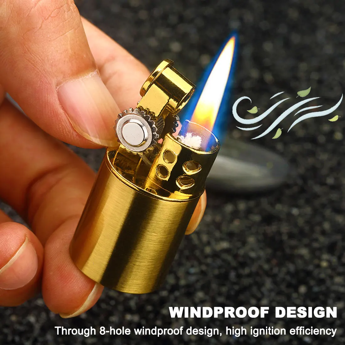 Особенности: 1. Мини-дизайн, ретро, элегантный вкус. 2. Удобная конструкция ручки, подходит для рук, удобная и противоскользящая. 3. Через 8 отверстий ветрозащитная конструкция, высокая эффективность зажигания, не зависит от давления плато. 4. Он изготовлен из высококачественных металлических материалов, с характеристиками твердости, долговечности и длительного срока службы. 5. Портативный, портативный, открытый, многофункциональный и простой в эксплуатации, он очень подходит для кемпинга, кемпинга, рыбалки, туризма, разведки и так далее.