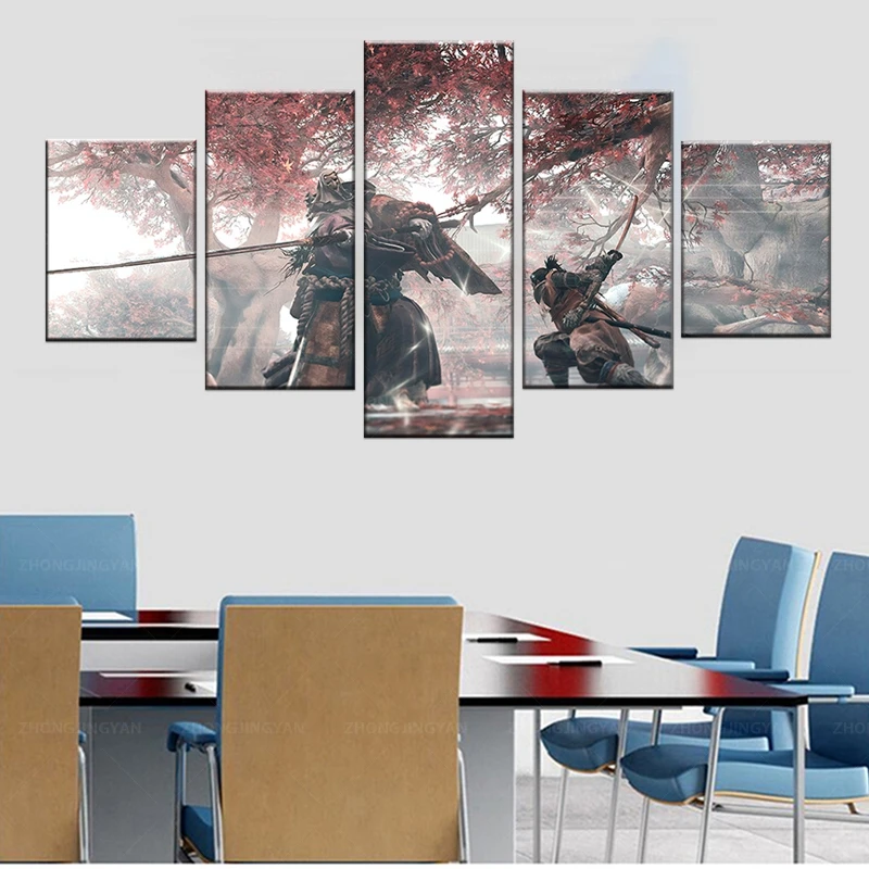 5 шт. HD Фэнтези искусство ниндзя Волк картина секиро тени умирают дважды игровая сцена плакат холст картины настенное искусство для декора спальни