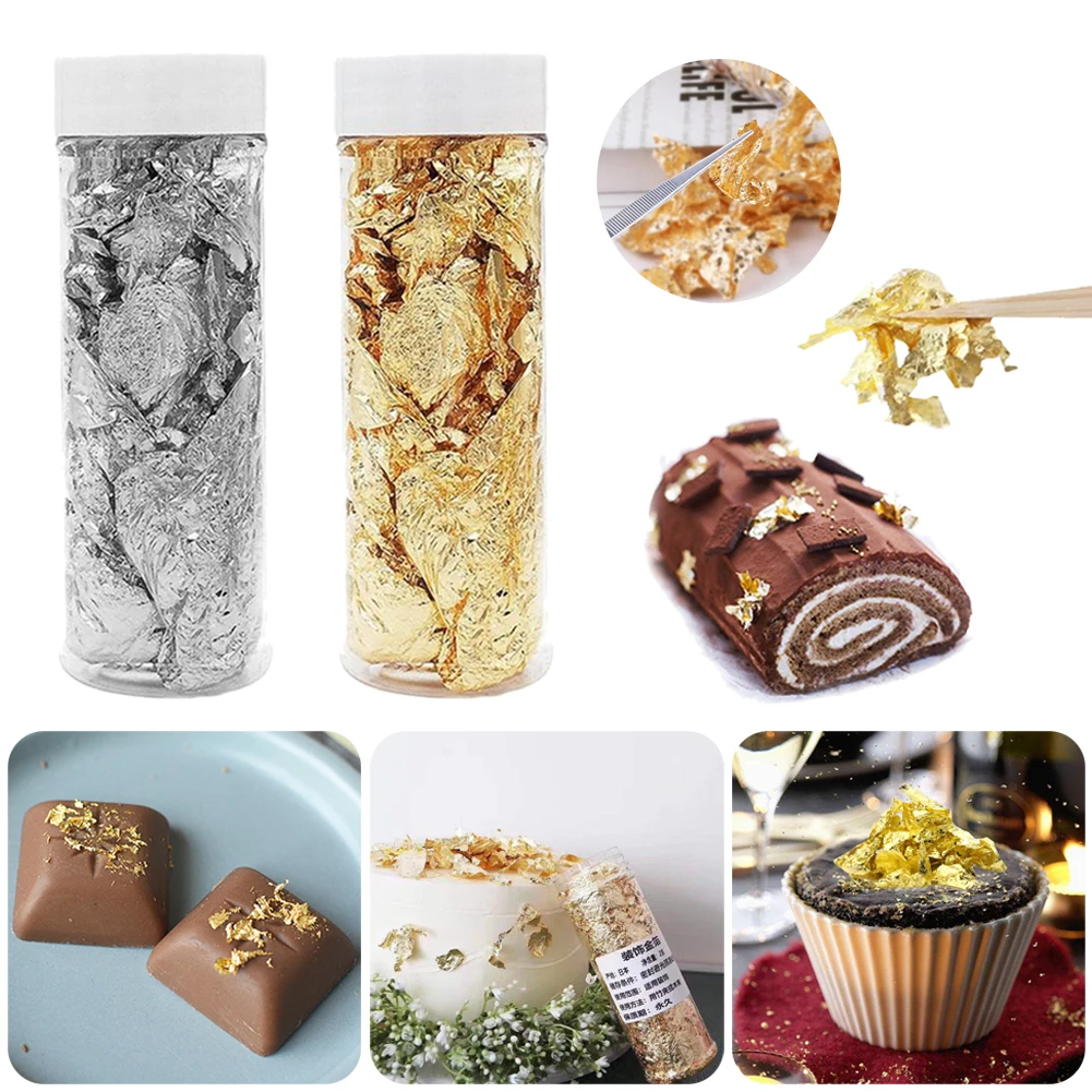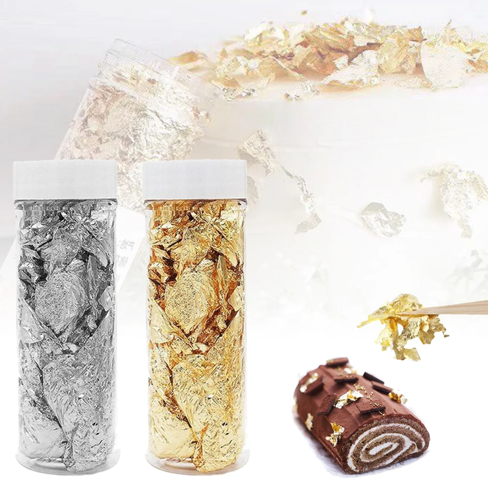 Многофункциональные хлопья из золотой фольги, золотые, серебряные, металлические хлопья из фольги с контейнером для смолы, для дизайна ногтей, украшения ручной работы