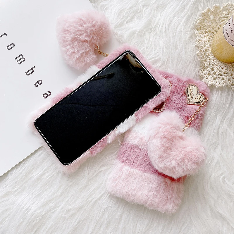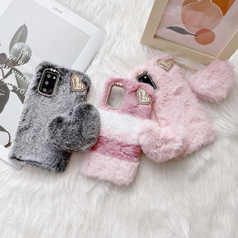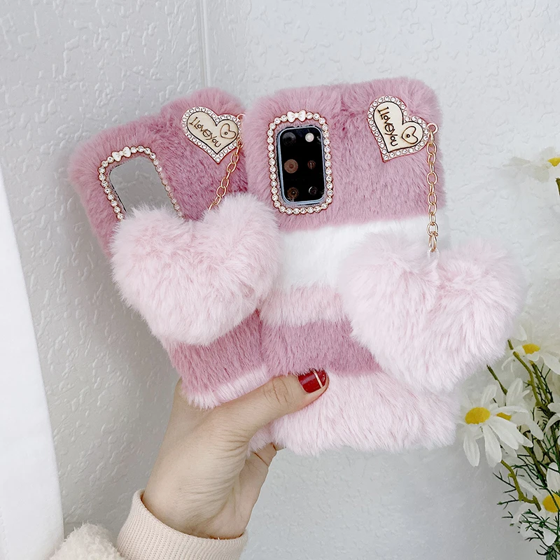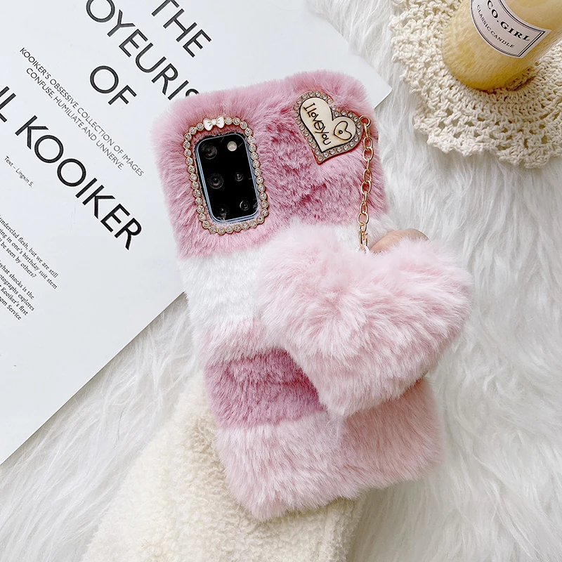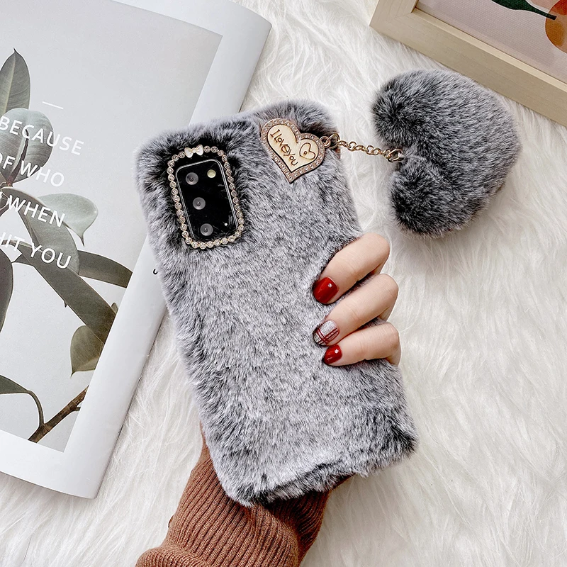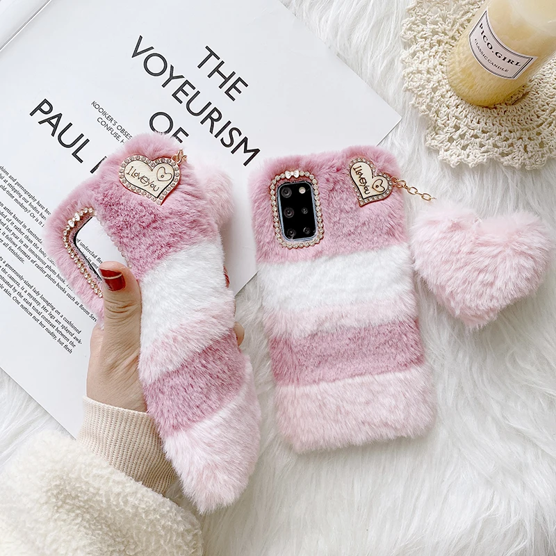 Милый Меховой чехол с подвеской в виде сердца для Samsung Note 20 Ultra 10 + 9 8 S20 FE S10 S9 S8 Plus A71 A51 A70, плюшевый чехол для телефона