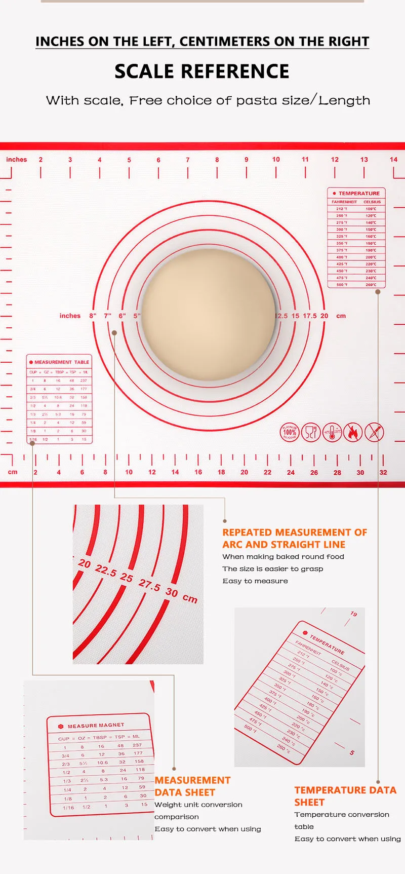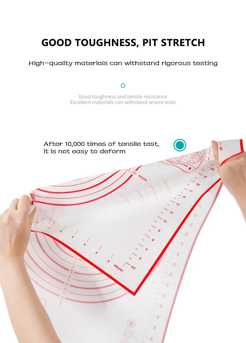 Изготовлен из высококачественного силикона и стекловолокна; Устойчивый к пятнам, устойчивый к прилипанию, этот коврик изготовлен из армированного стекловолокна и пищевого силикона. Коврик для выпечки никогда не будет тускнеть или обесцвечиваться;