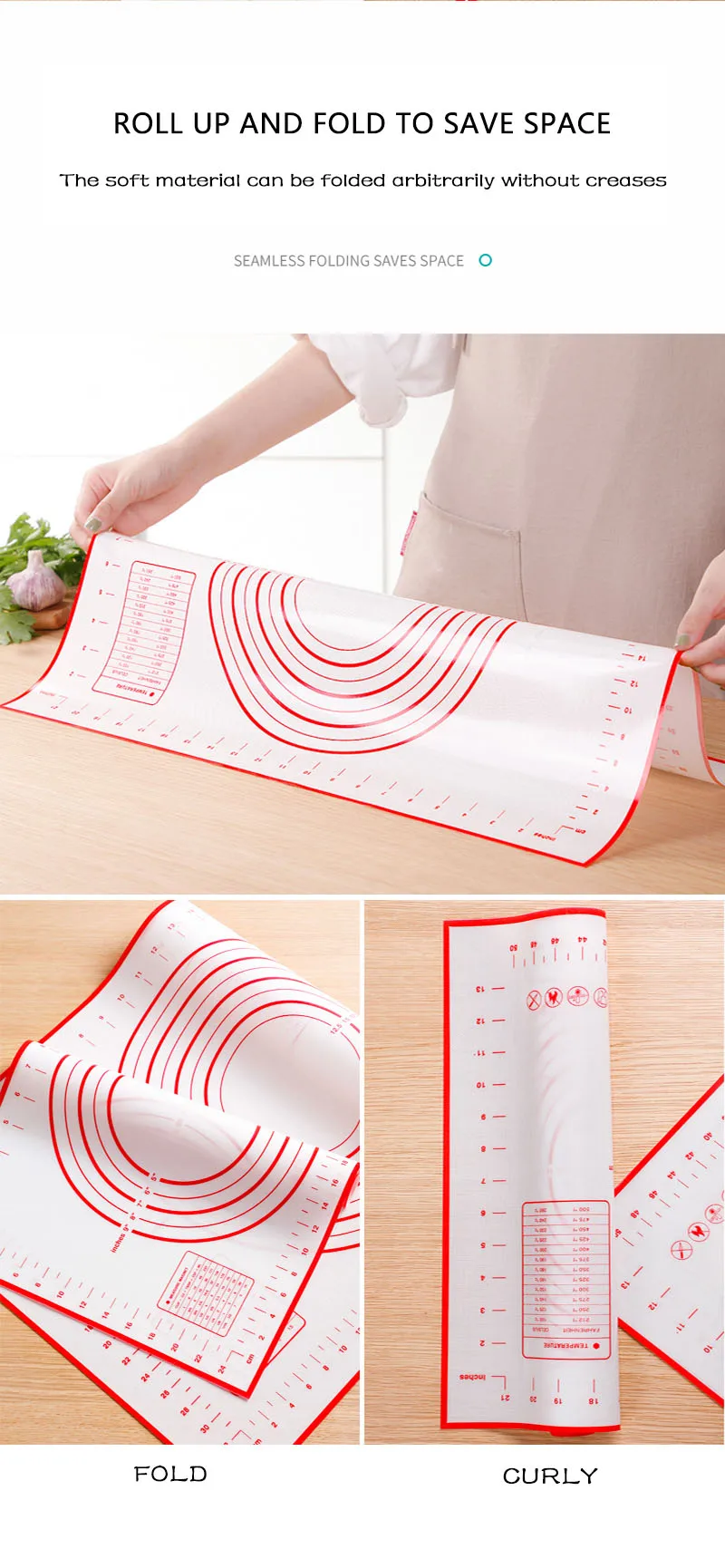Сохранит вашу столешницу в чистоте. Большой коврик для разминания больше не царапает тесто или не смывает столешницу, повторное использование и циклы очистки не влияют на антипригарные свойства подкладки. Его можно хранить в свернутом или сложенном виде, занимая минимальное пространство в ящике или шкафу.