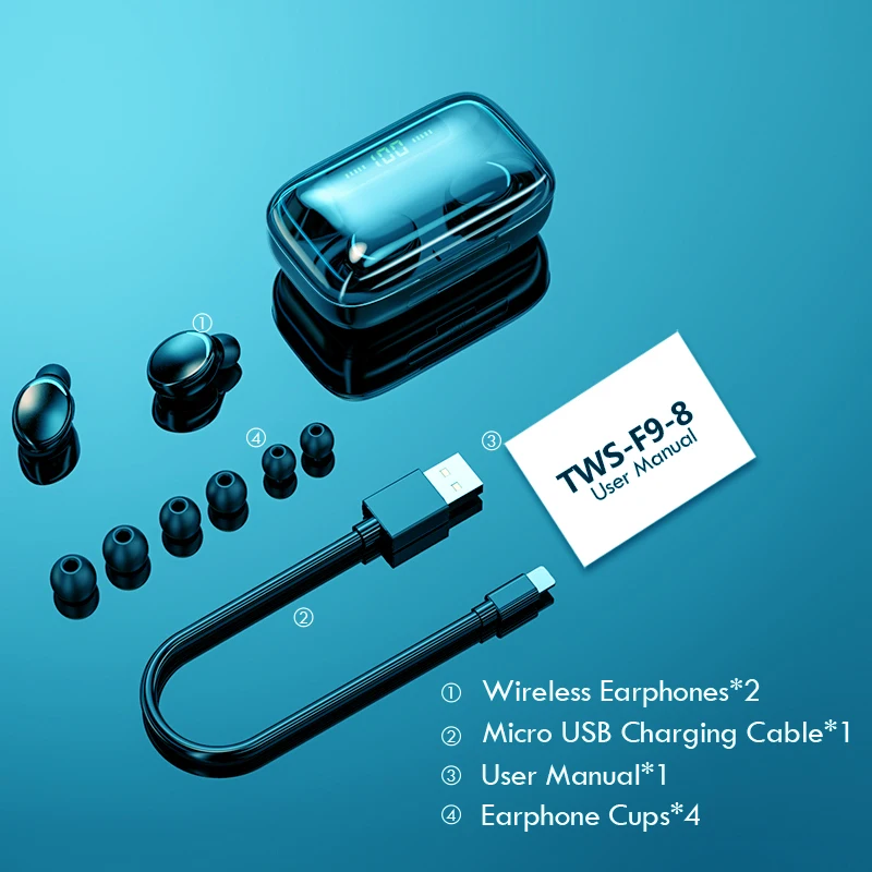 Рекомендуется продавцуBluetooth-гарнитура нового поколения F9Его можно использовать с любым мобильным телефоном, поддерживающим функцию Bluetooth, независимо от бренда и режима. Extreme Edition Мощный помощник по обновлению:1. Обновленный светодиодный дисплей мощности: Интуитивно понятное представление об уровне зарядки салона электроэнергии и гарнитуры с первого взгляда2. Обновление чипа F9-8: Обновите чип Bluetooth 5,0, выберите автоматическую загрузку и соответствие3. Обновление операционной функции: Переключение предыдущей/следующей песни одним касанием и регулировка громкости помощник пробуждения4. Зарядная кабина большой емкости: можно использовать футляр для хранения телефона для наушников/мобильный телефон в качестве держателя мобильный телефон5. Наслаждайтесь и 9D тяжелыми басами: Наслаждайтесь звуком Hi-Fi и наслаждайтесь иммерсивным стереозвуком 9D6. Интеллектуальное шумоподавление CVC80: Наслаждайтесь эффектами вызова HD без ущерба для шумной окружающей среды7. Сильная Совместимость: независимо от бренда мобильного телефона и модели, можно использовать устройства с поддержкой BluetoothЭта гарнитура