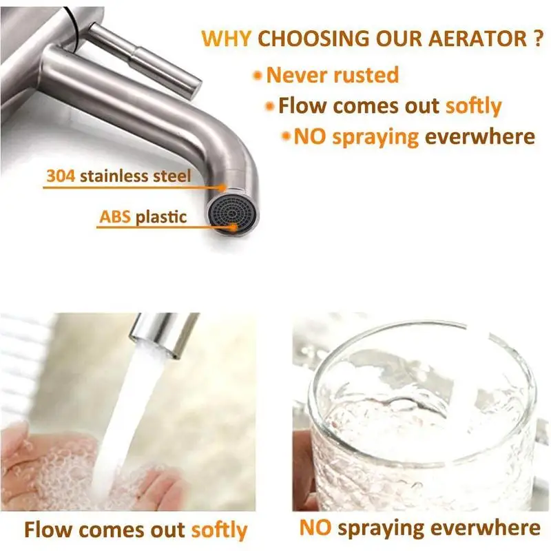 Дизайн потока воды: Наша насадка для смесителя дает мягкий поток пузырей. По сравнению с общим соплом смесителя, он может сэкономить 30%-70% воды, принести хороший экономичный способ для вашей семьи.