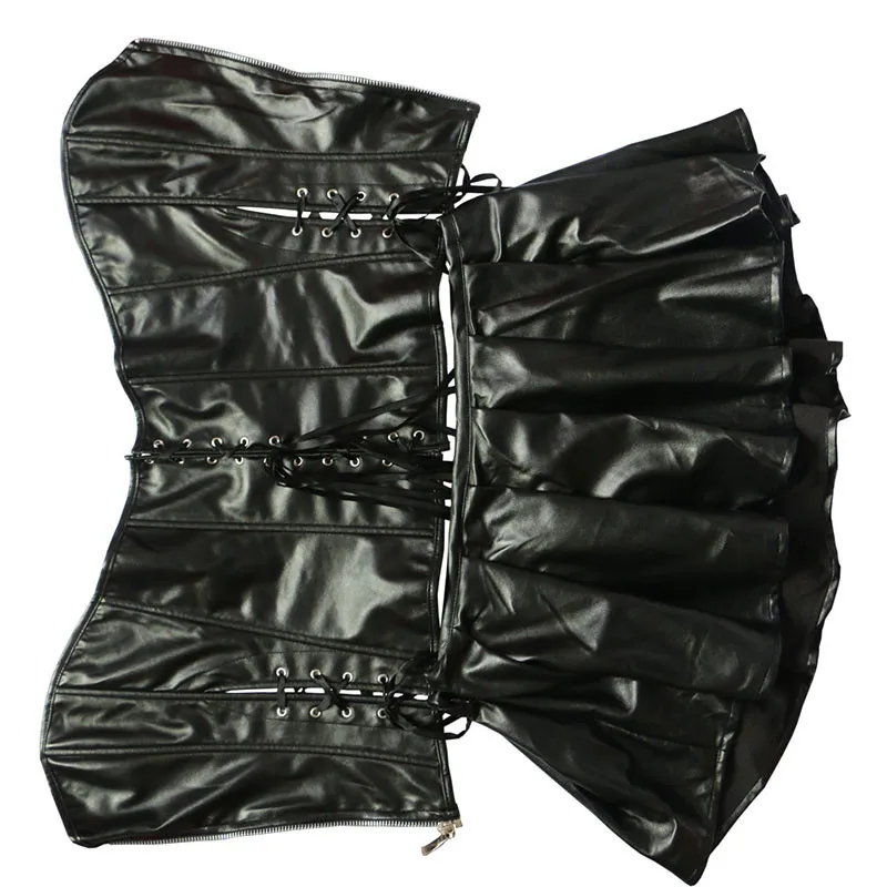 Пикантные женские стимпанк корсет без бретелек из искусственной кожи Корсет Overbust платье комплект Готический Body Shaper мини-юбка платье размера плюс 6XL