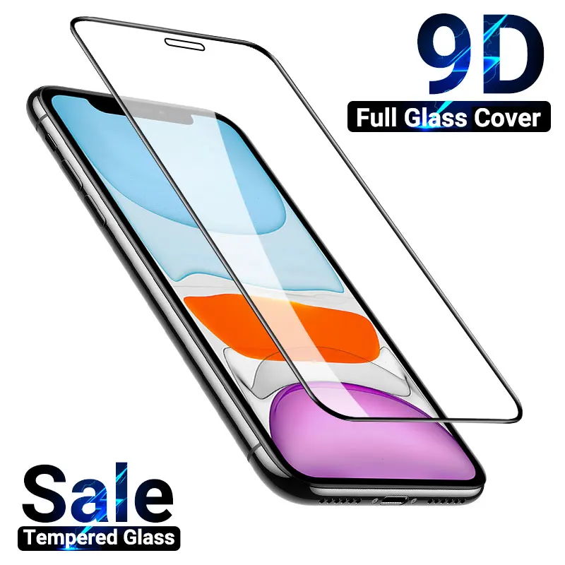 Закаленное стекло 9D с полным покрытием для iPhone 11, 12, 13 Pro, ...