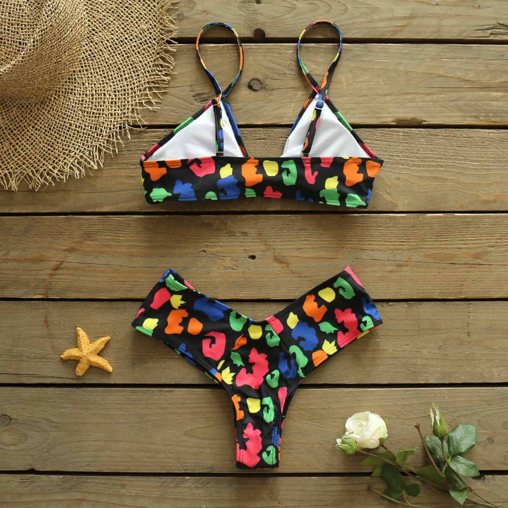 Новинка 2021, сексуальный комплект бикини с низкой талией, купальник пуш-ап с цветочным принтом и леопардовым принтом, женская пляжная одежда, купальный костюм, бикини
