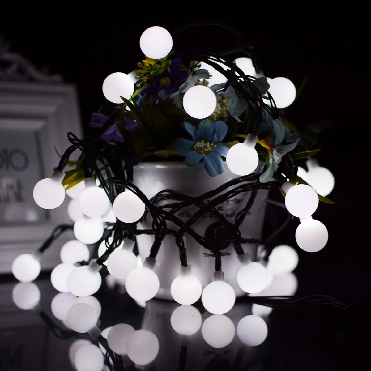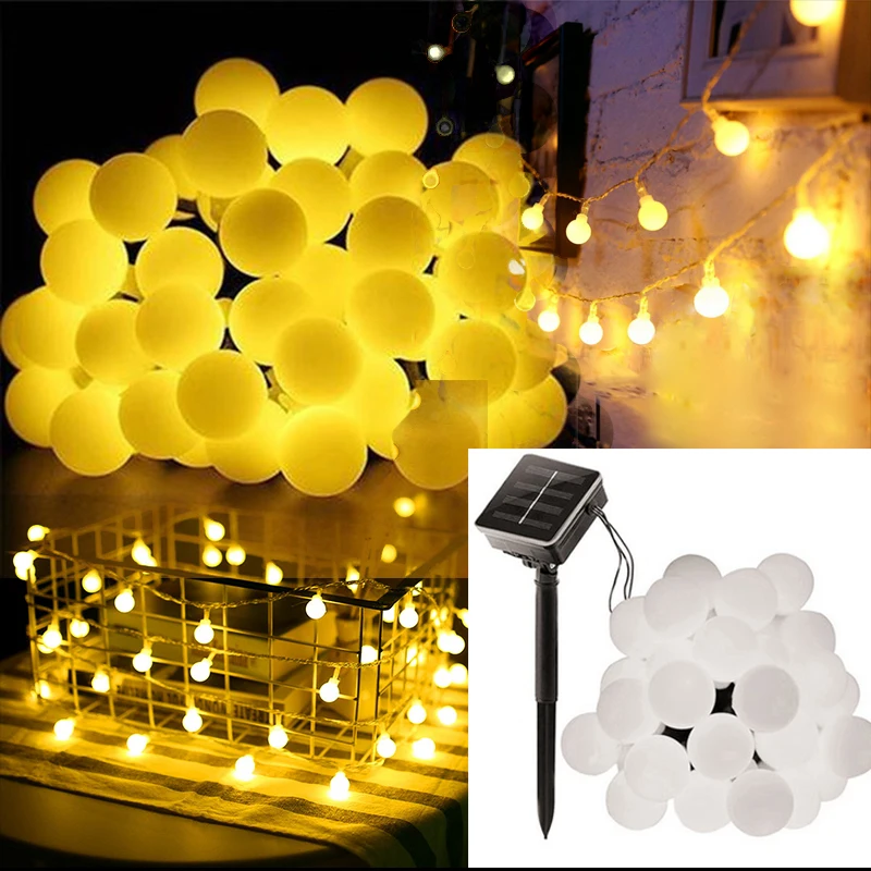 Светодиодная уличная гирлянда на солнечной батарее с белыми шарикам...